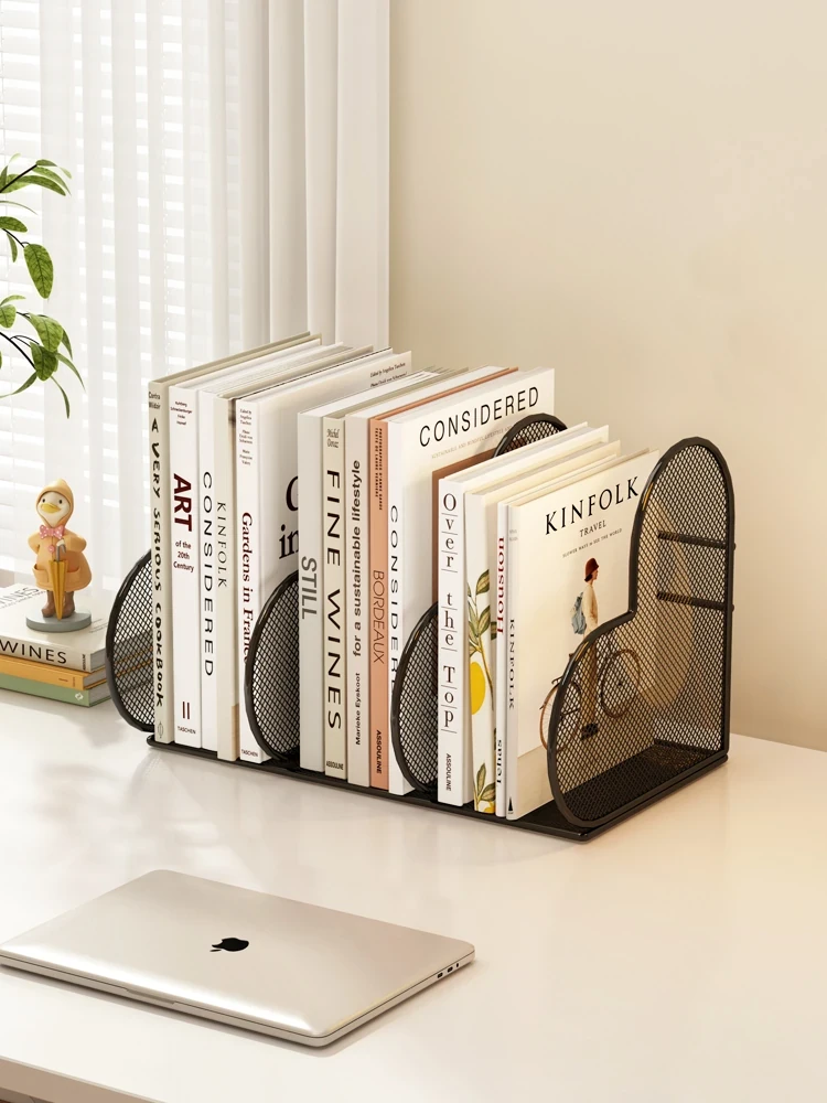 Iron Bookcase and Desktop Organizer - Heart-Shaped File Holder for Students, Creative Storage Solution for Books, Documents, and Office Supplies - Perfect for Desk Organization and Reading Enjoyment!