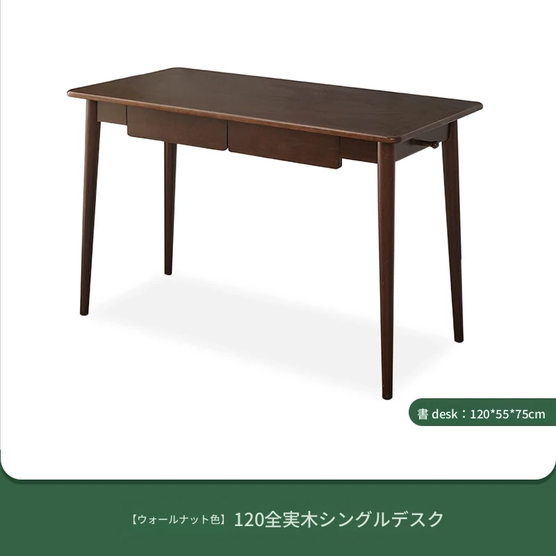 【ウォールナットカラー】全実木120デスク+実木スツール牛角椅子