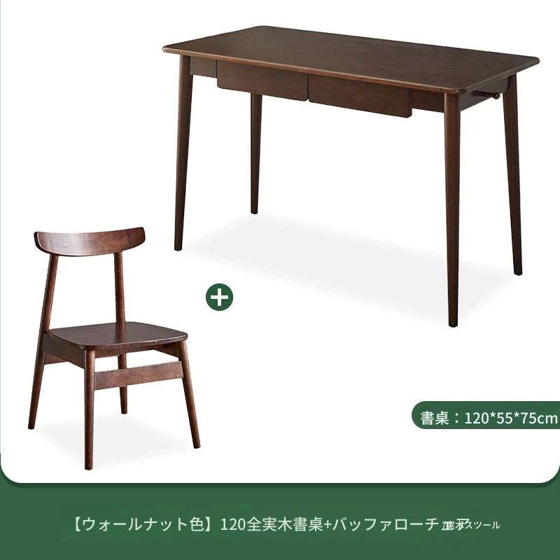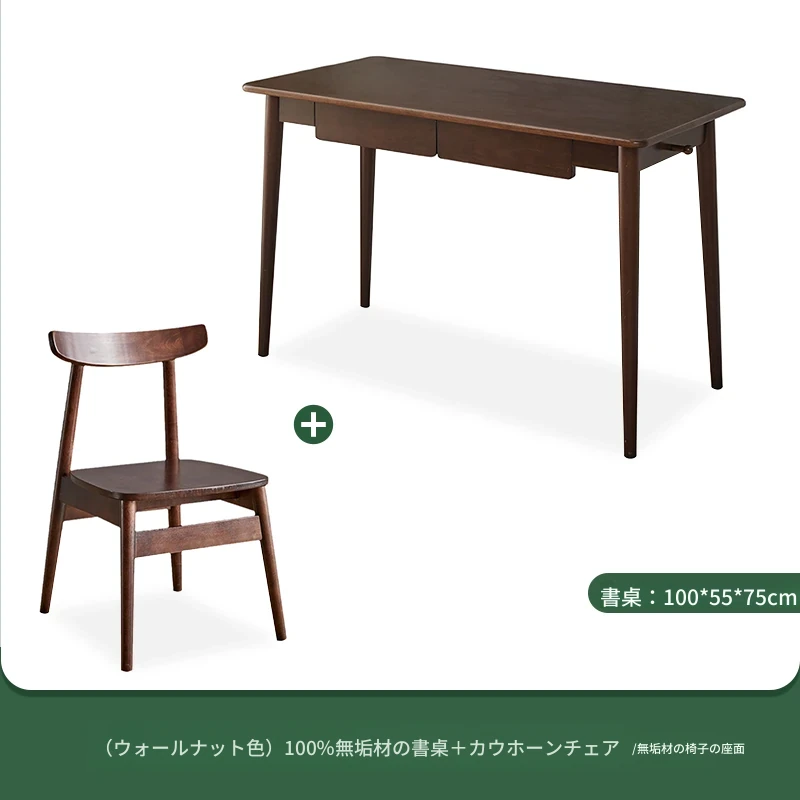 【ウォールナットカラー】全実木100デスク+実木スツール牛角椅子