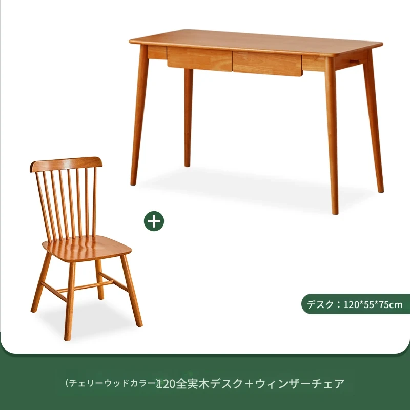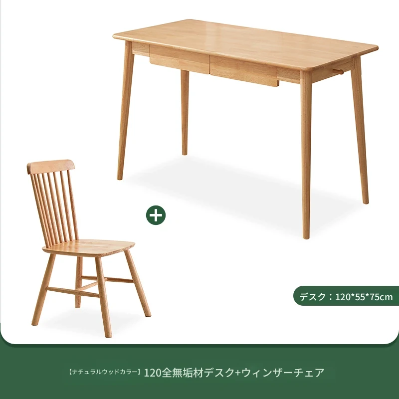 【ナチュラルカラー】全実木120デスク+実木ウィンザーチェア