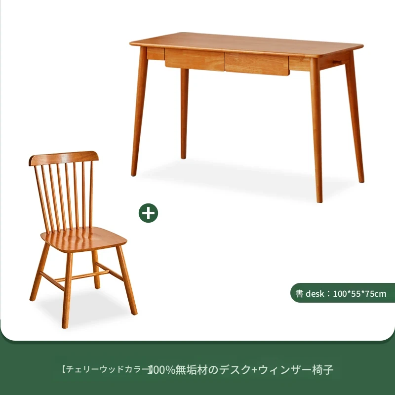 【ナチュラルカラー】全実木100デスク+実木ウィンザーチェア