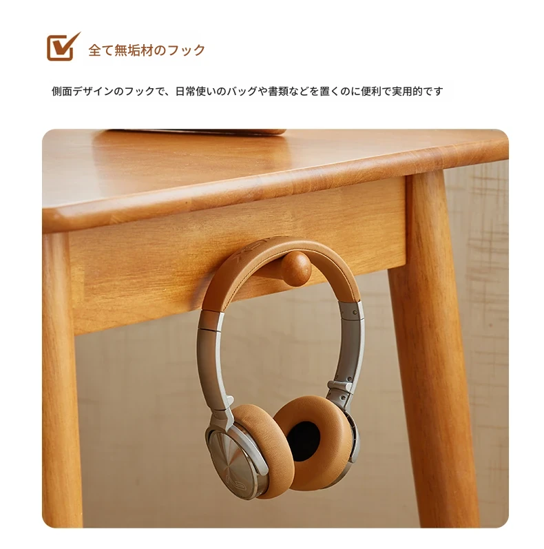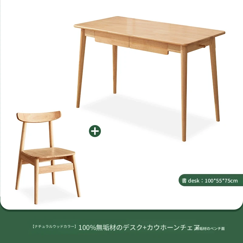 【ナチュラルカラー】全実木100デスク+実木スツール牛角椅子