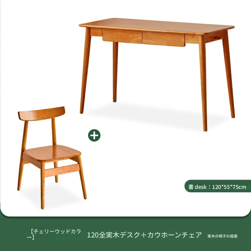 【チェリーレッド】全実木120デスク+実木スツール牛角椅子