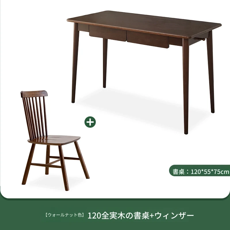 【ウォールナットカラー】全実木120デスク+実木ウィンザーチェア