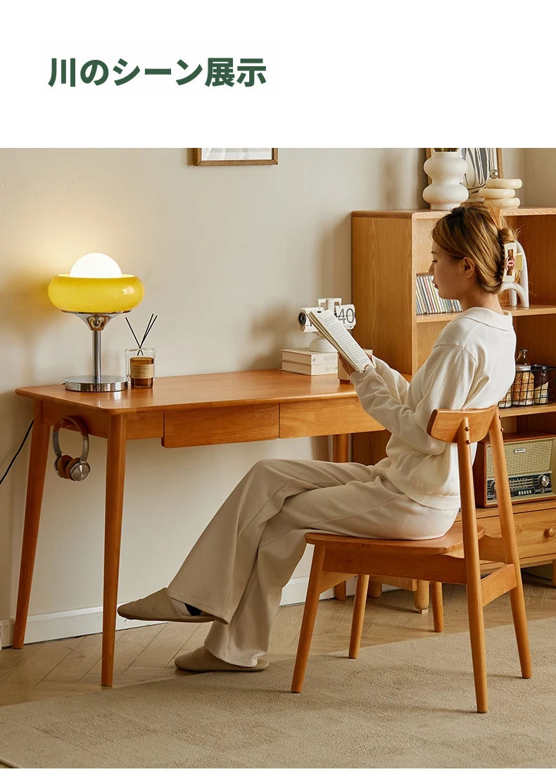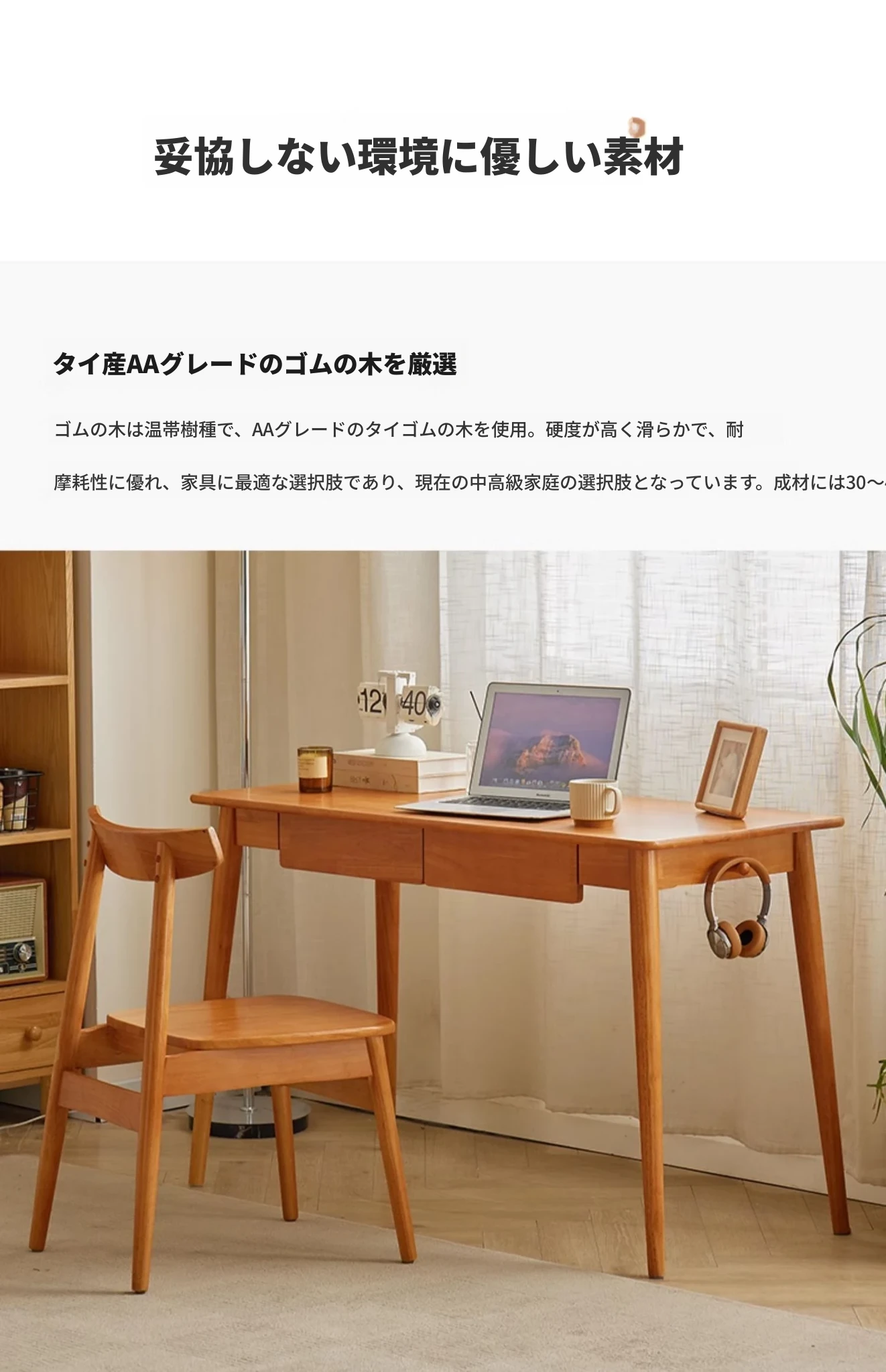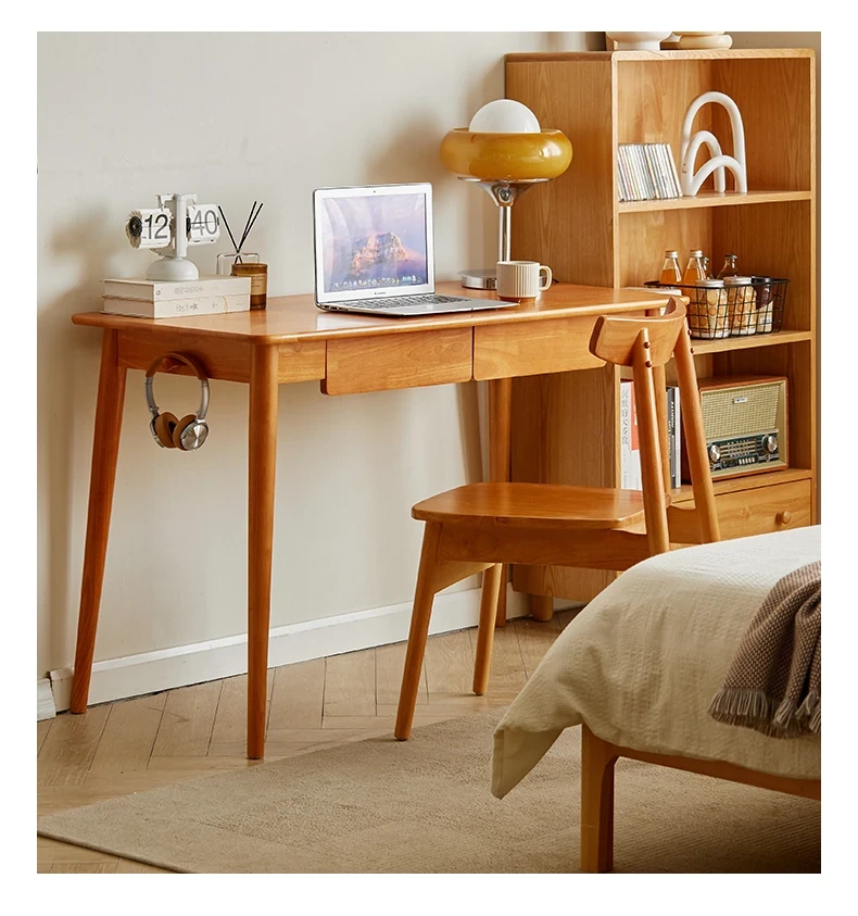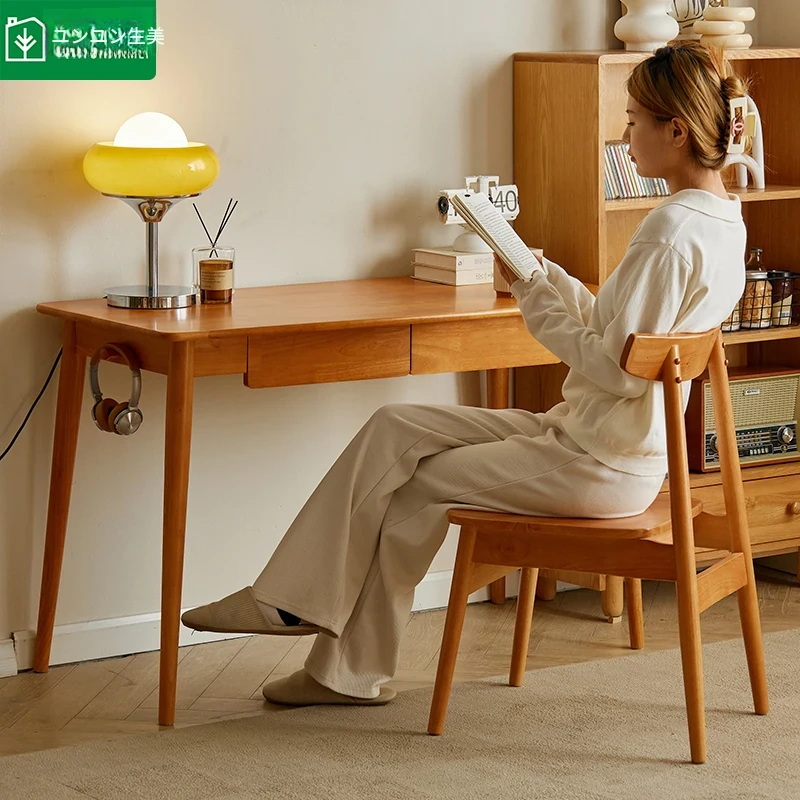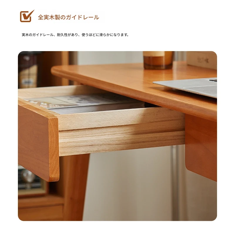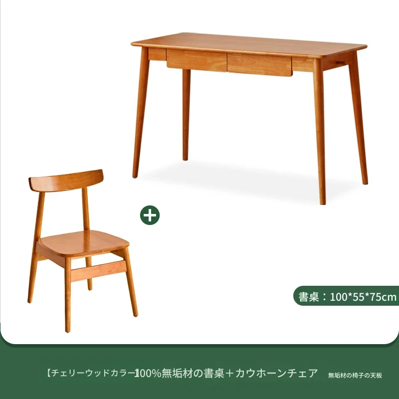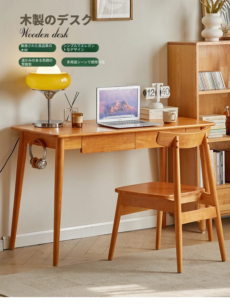 ユンユン・ジャーメイの無垢材使用!チェリーウッドカラーのシンプルでモダンなパソコンデスク。北欧スタイルの書斎にぴったりな書き物デスクで、快適な作業環境を実現します!