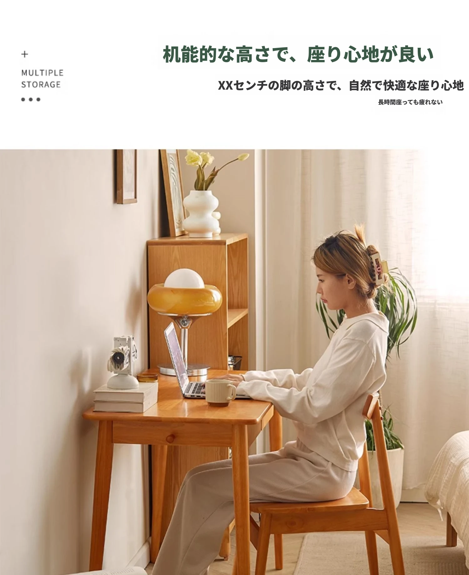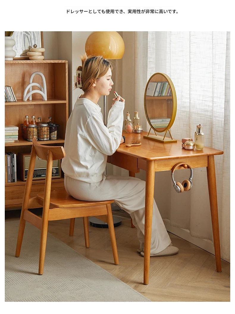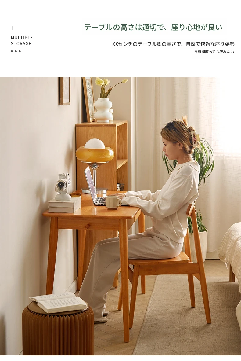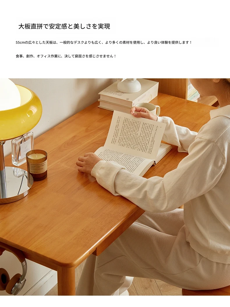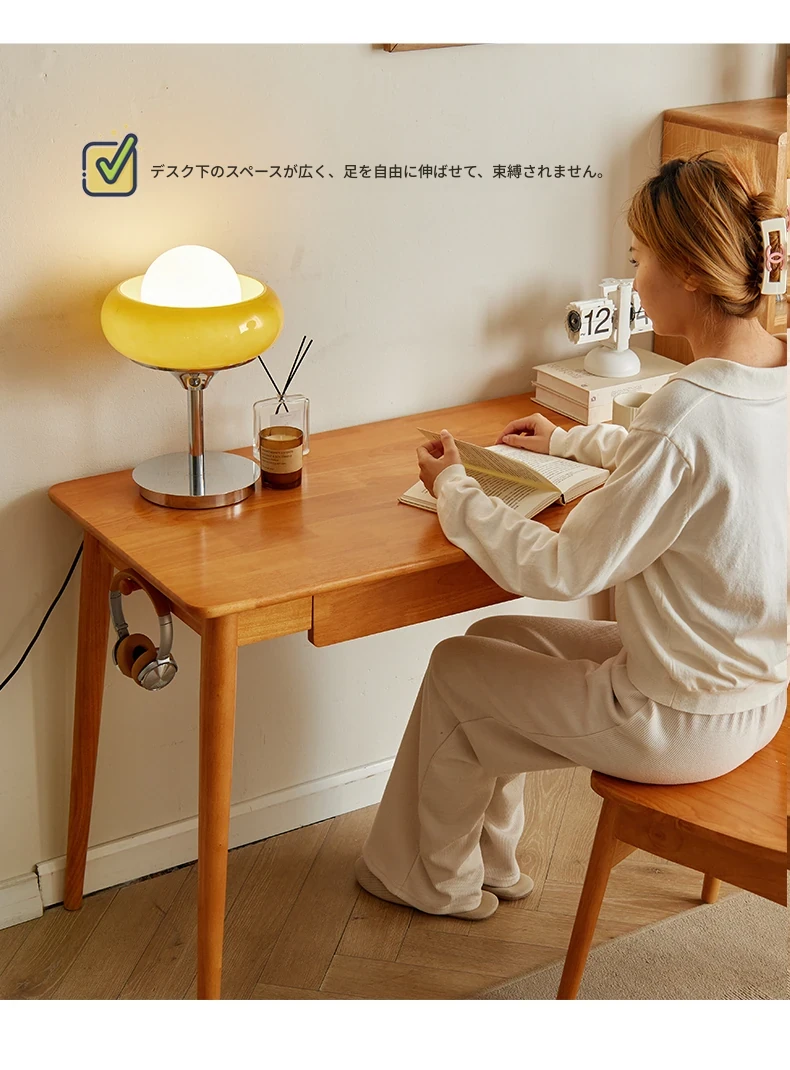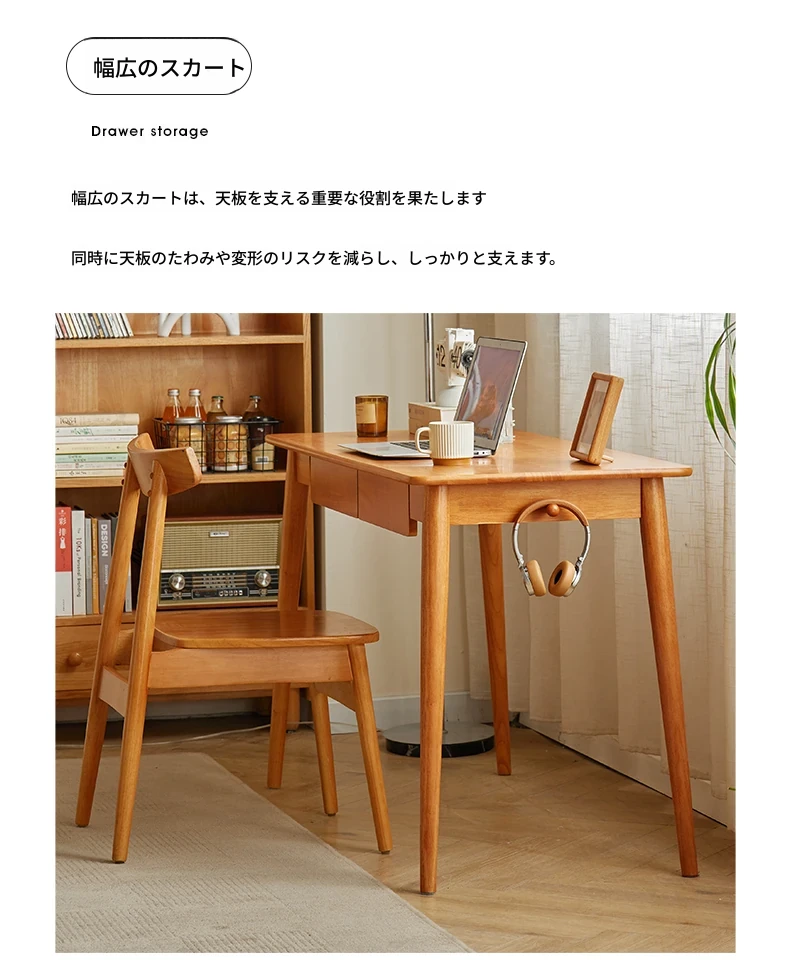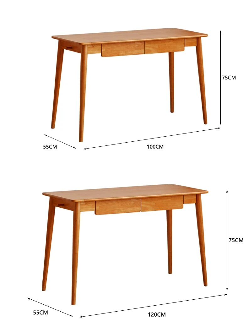 ユンユン・ジャーメイの無垢材使用!チェリーウッドカラーのシンプルでモダンなパソコンデスク。北欧スタイルの書斎にぴったりな書き物デスクで、快適な作業環境を実現します!