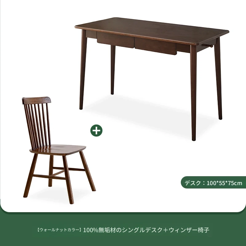 【ウォールナットカラー】全実木100デスク+実木ウィンザーチェア