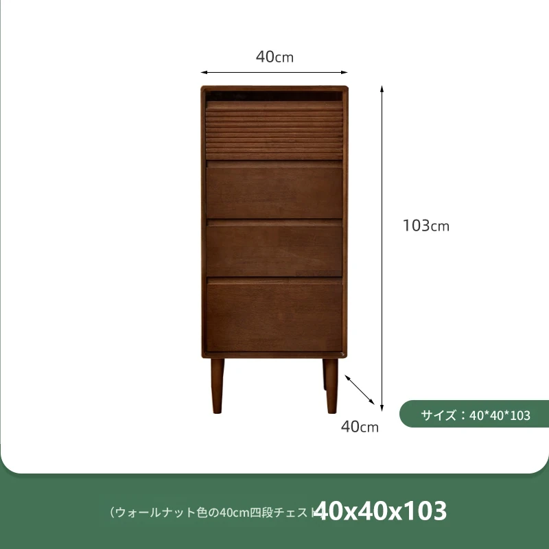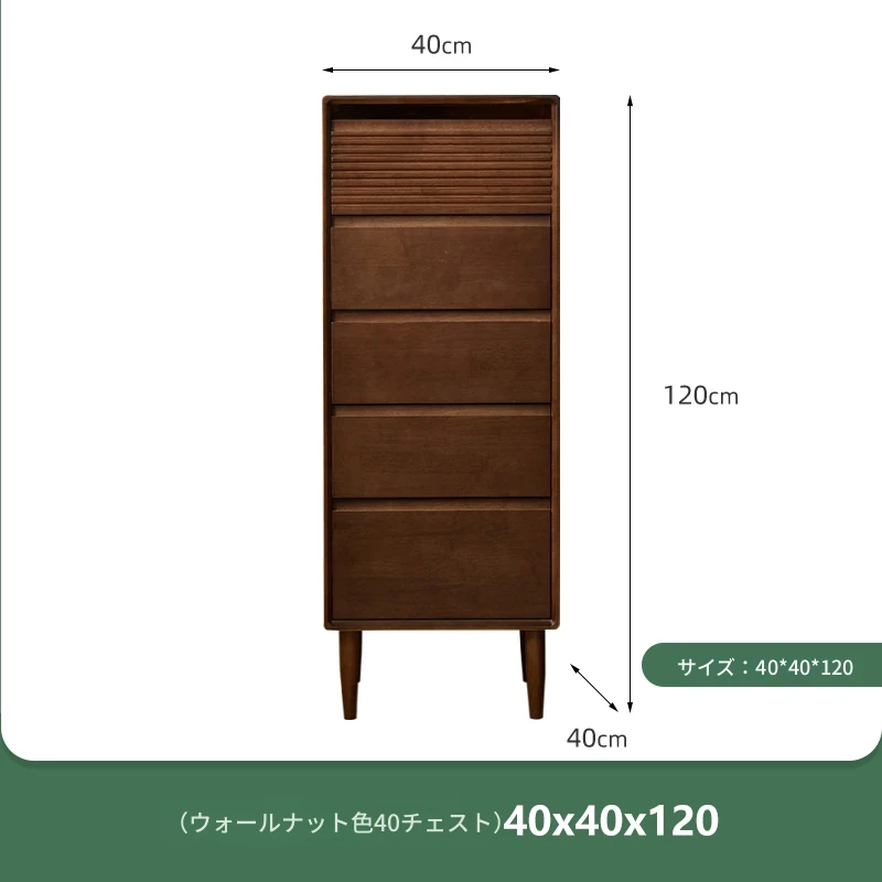 【ウォールナットカラー】無垢材の四段チェスト 40スリム