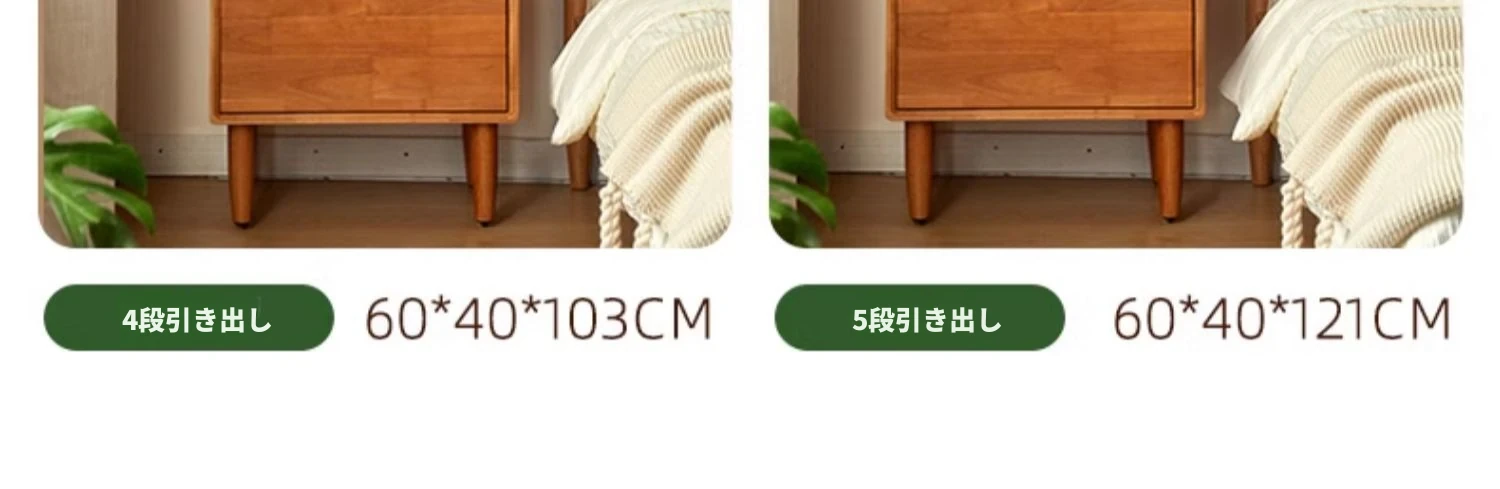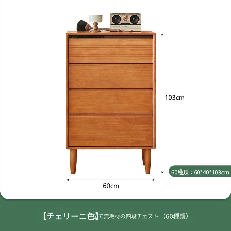 【チェリーウッドカラー】無垢材の四段チェスト 60ワイド