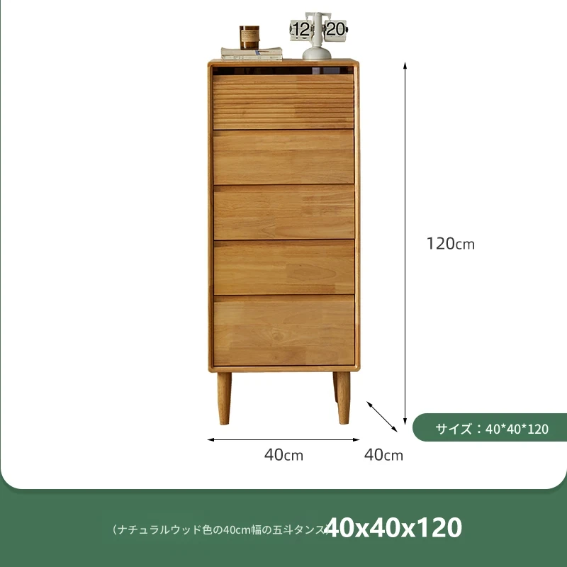 【ナチュラルウッドカラー】無垢材の五段チェスト 40スリム