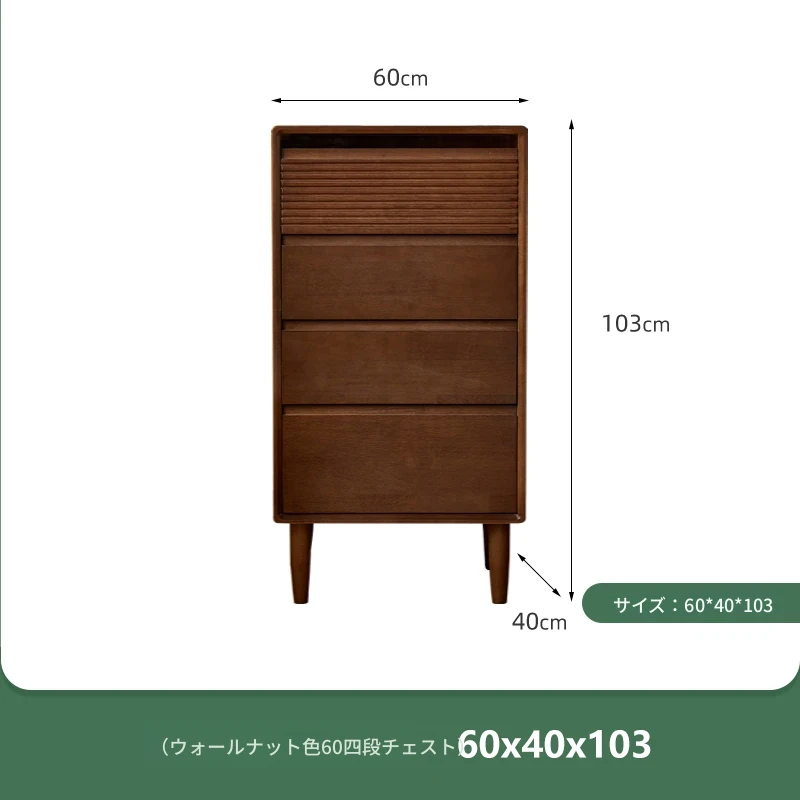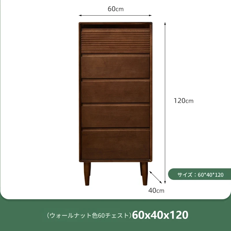 【ウォールナットカラー】無垢材の四段チェスト 60ワイド