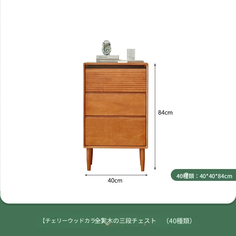 【チェリーウッドカラー】無垢材の三段チェスト 40スリム