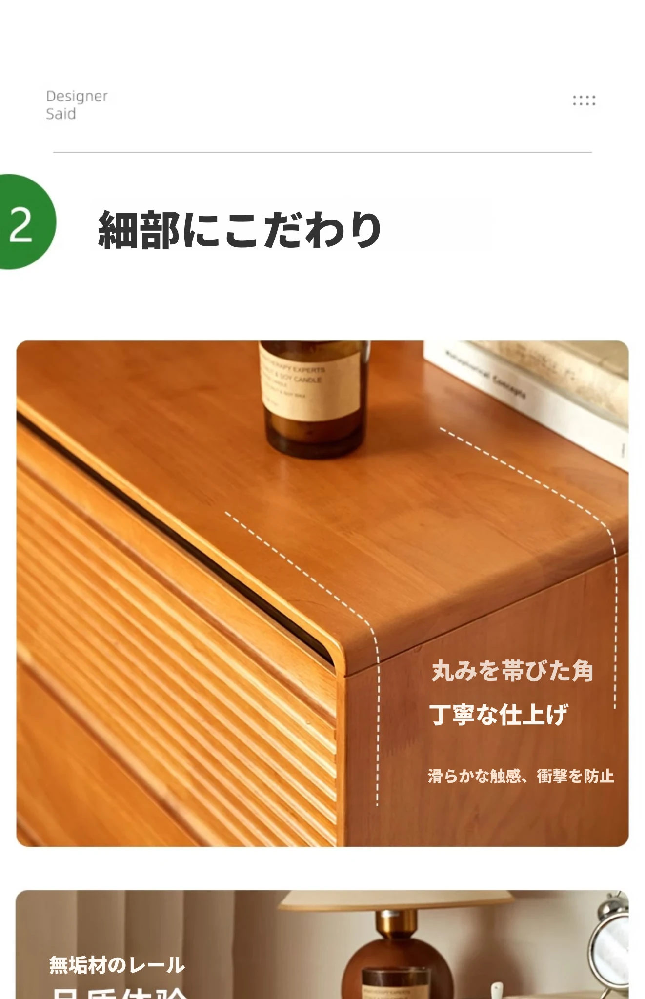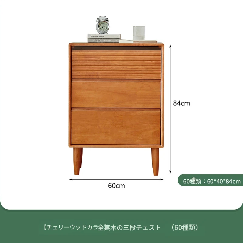 【チェリーウッドカラー】無垢材の三段チェスト 60ワイド