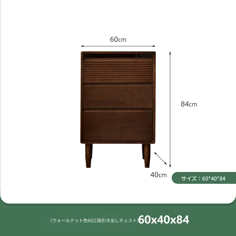 【ウォールナットカラー】無垢材の三段チェスト 60ワイド