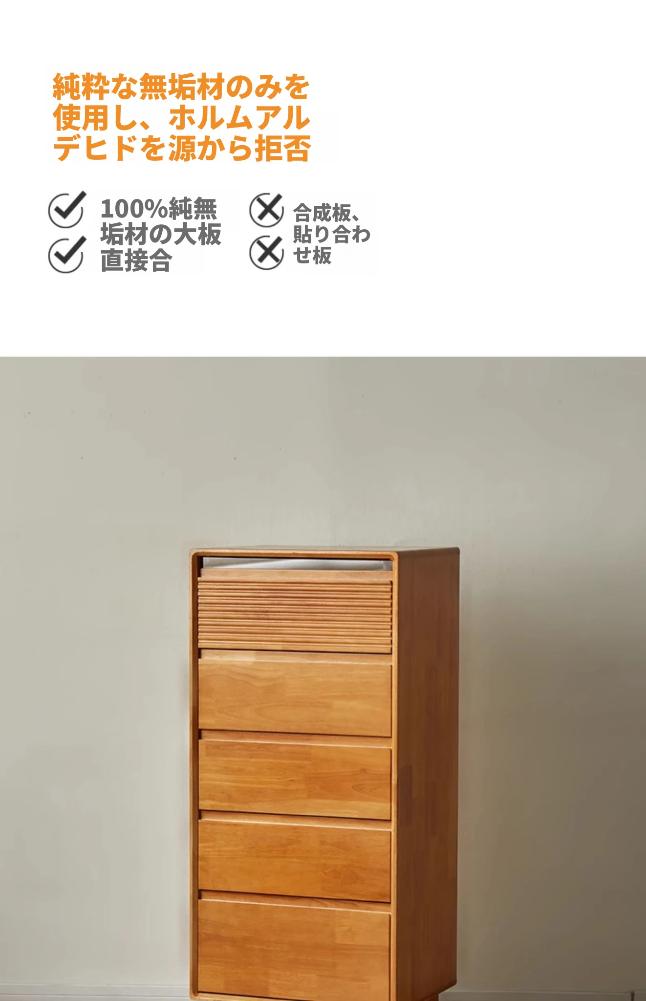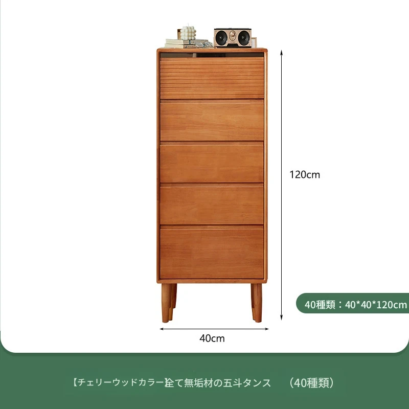 【チェリーウッドカラー】無垢材の五段チェスト 40スリム
