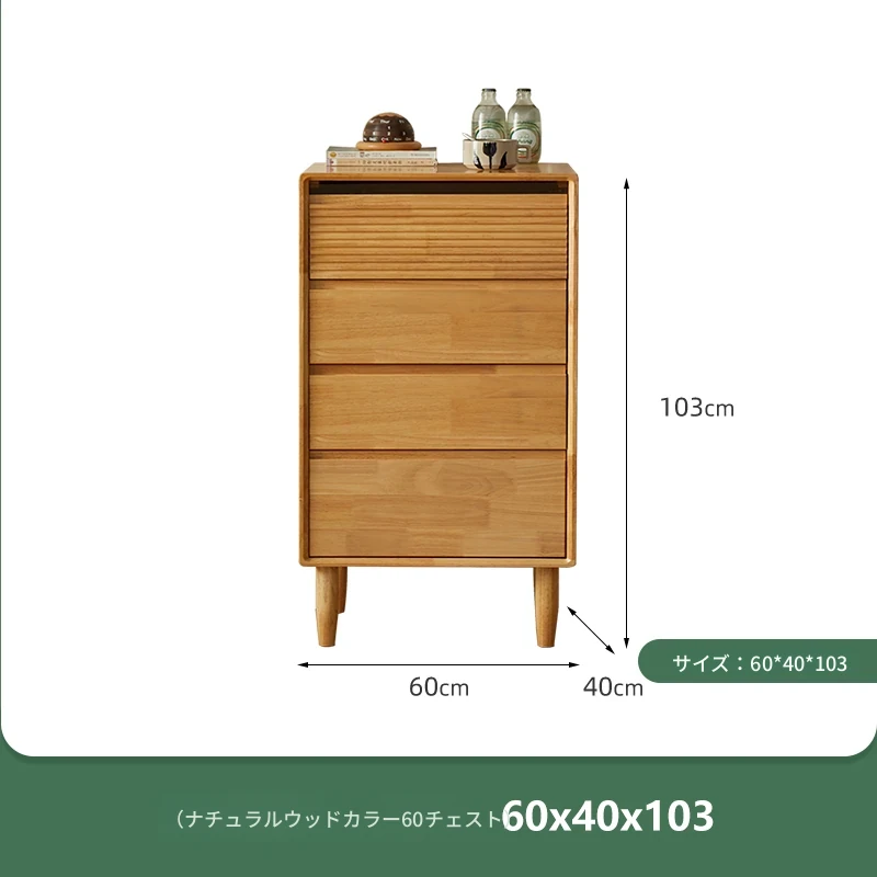 【ナチュラルウッドカラー】無垢材の四段チェスト 60ワイド