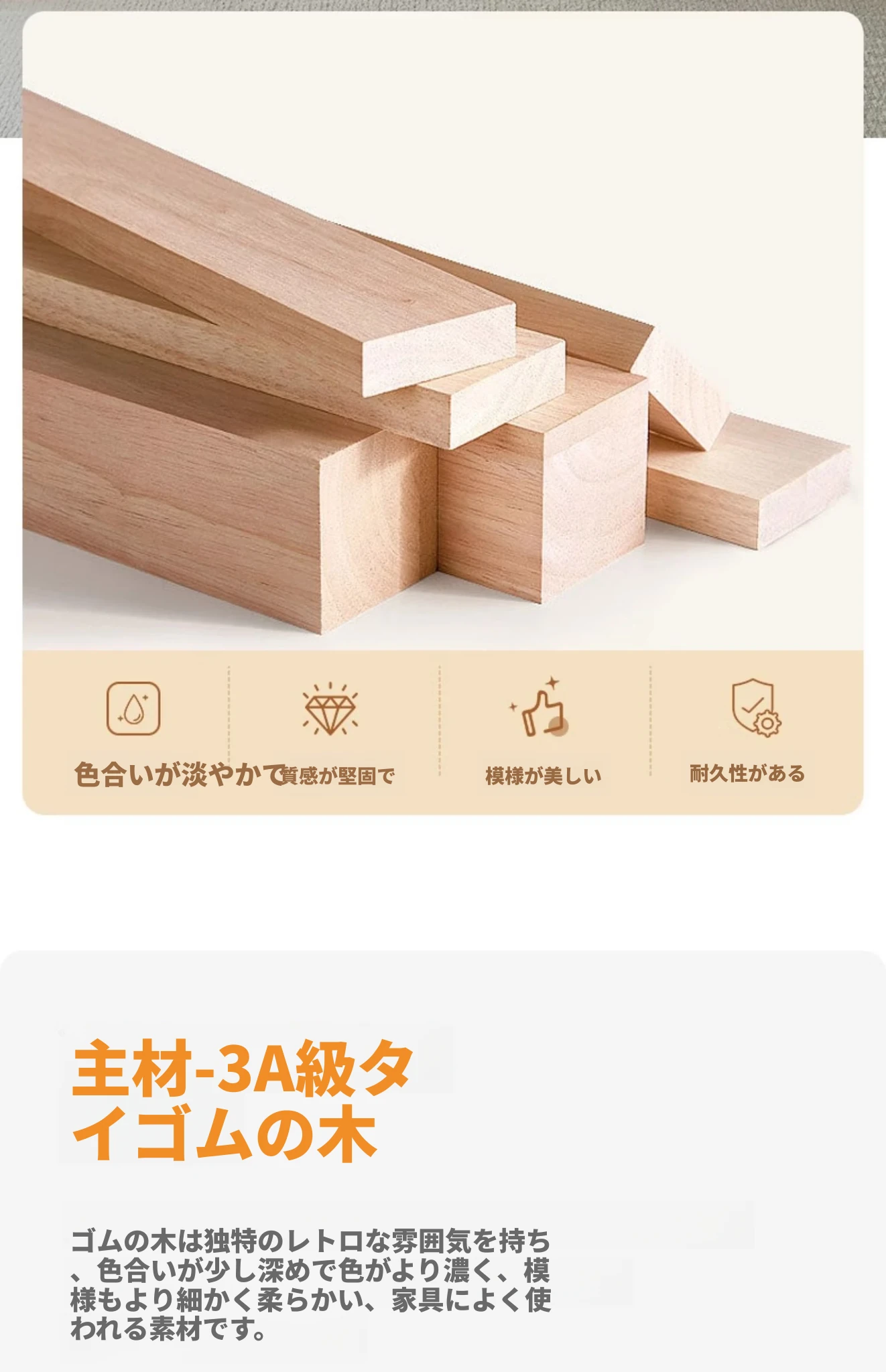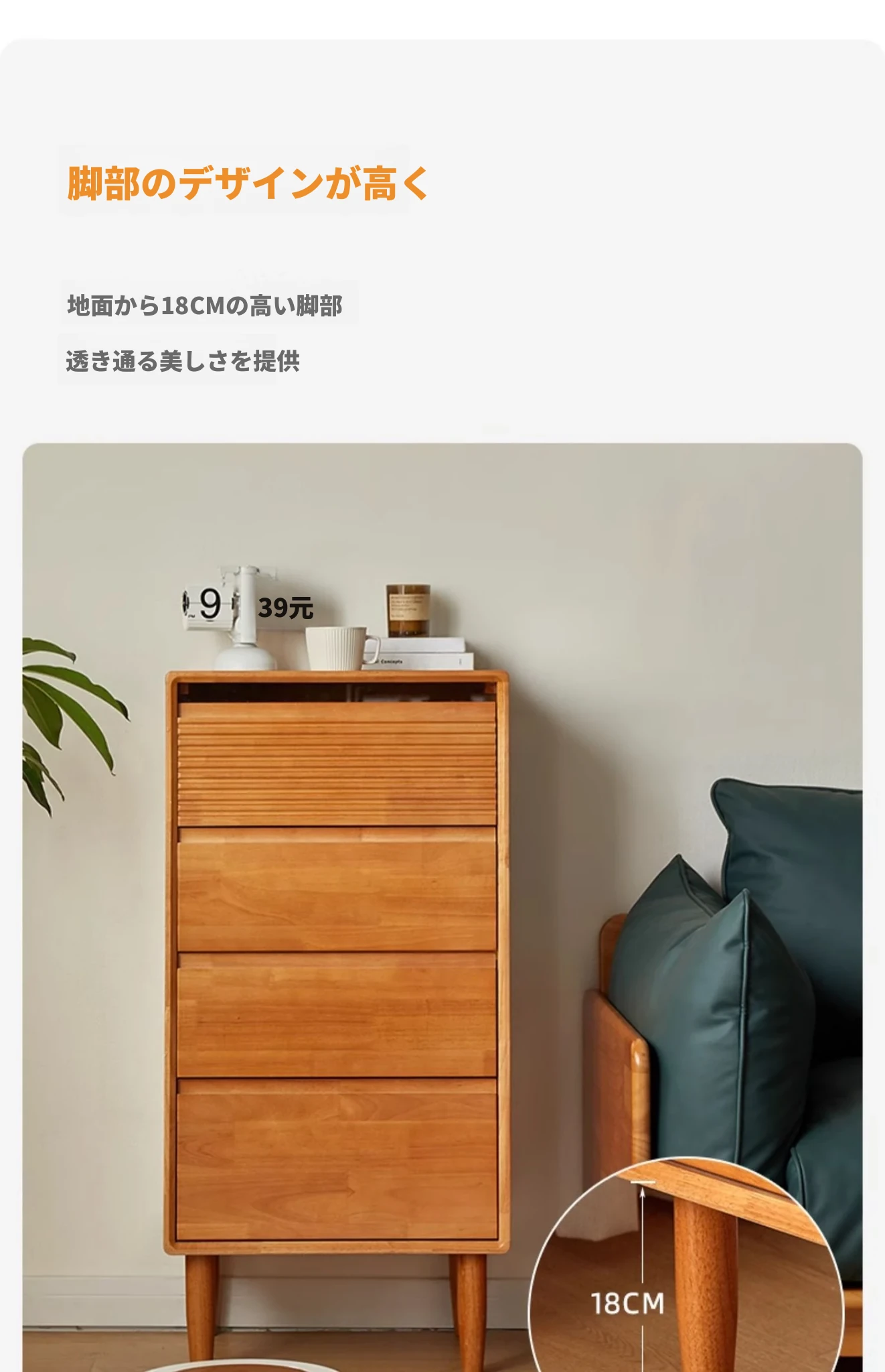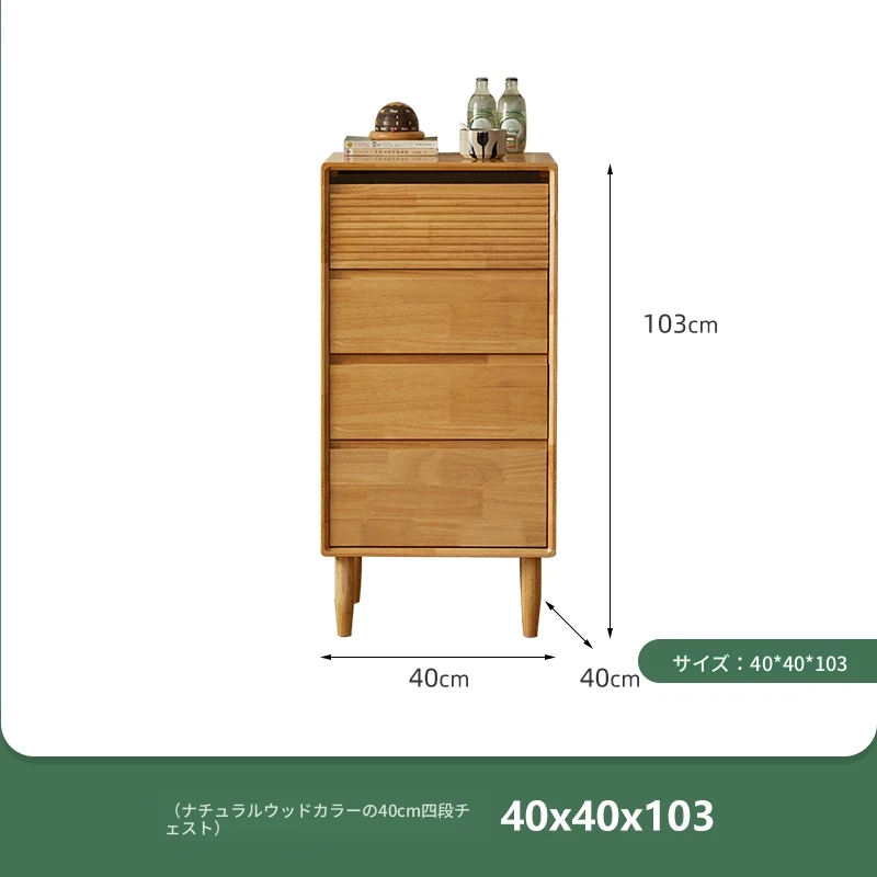 【ナチュラルウッドカラー】無垢材の四段チェスト 40スリム