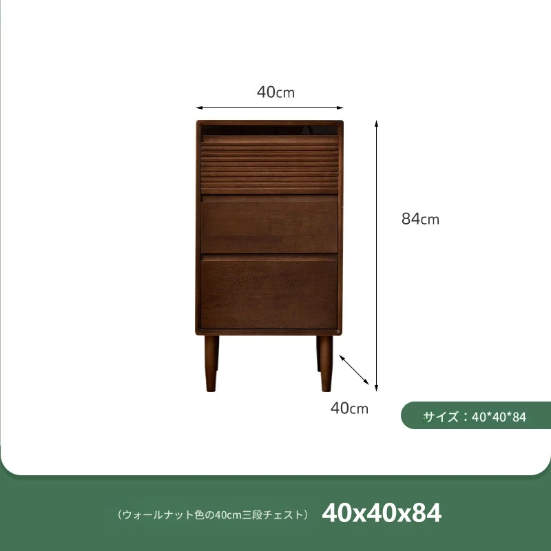 【ウォールナットカラー】無垢材の三段チェスト 40スリム