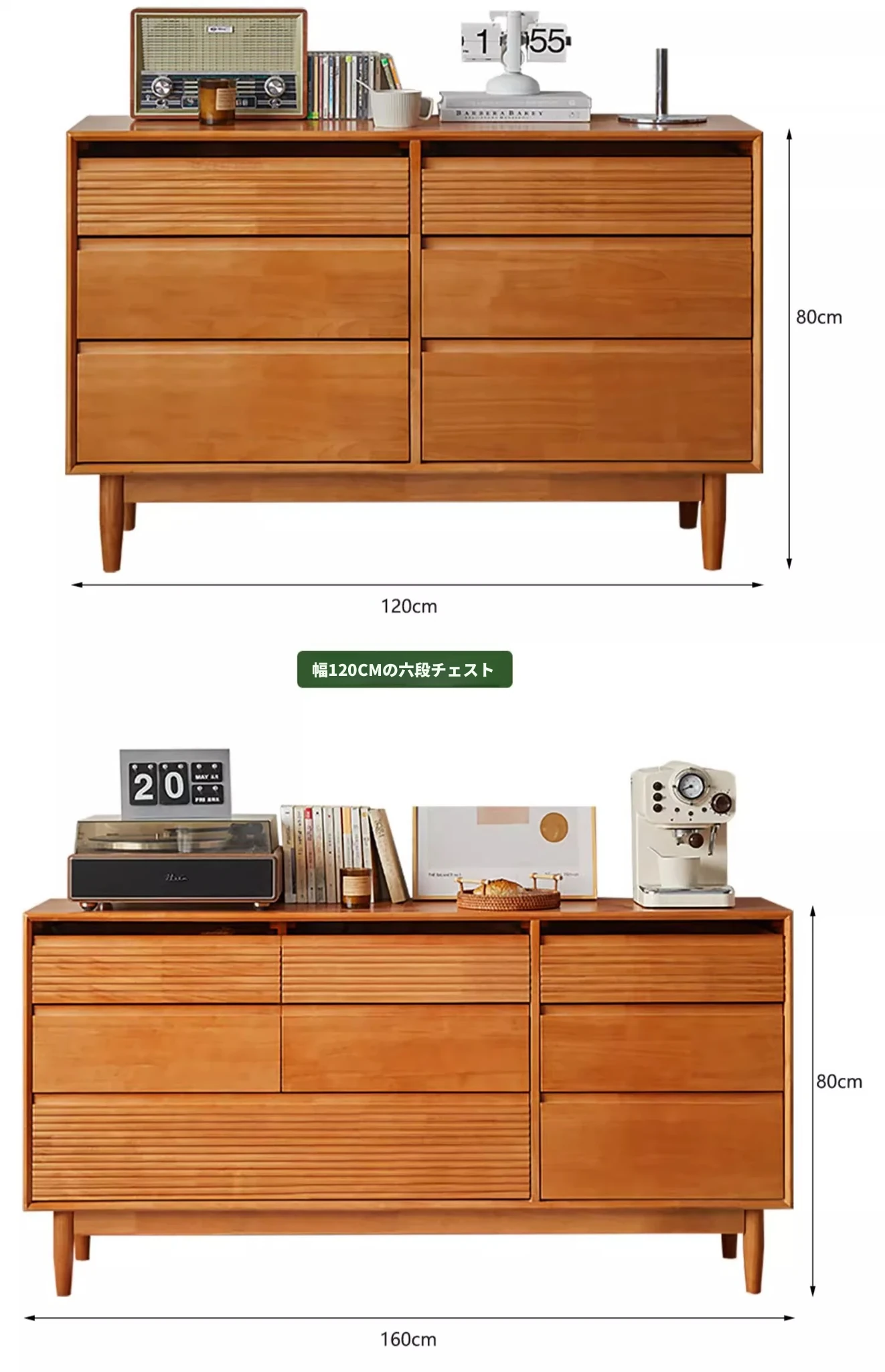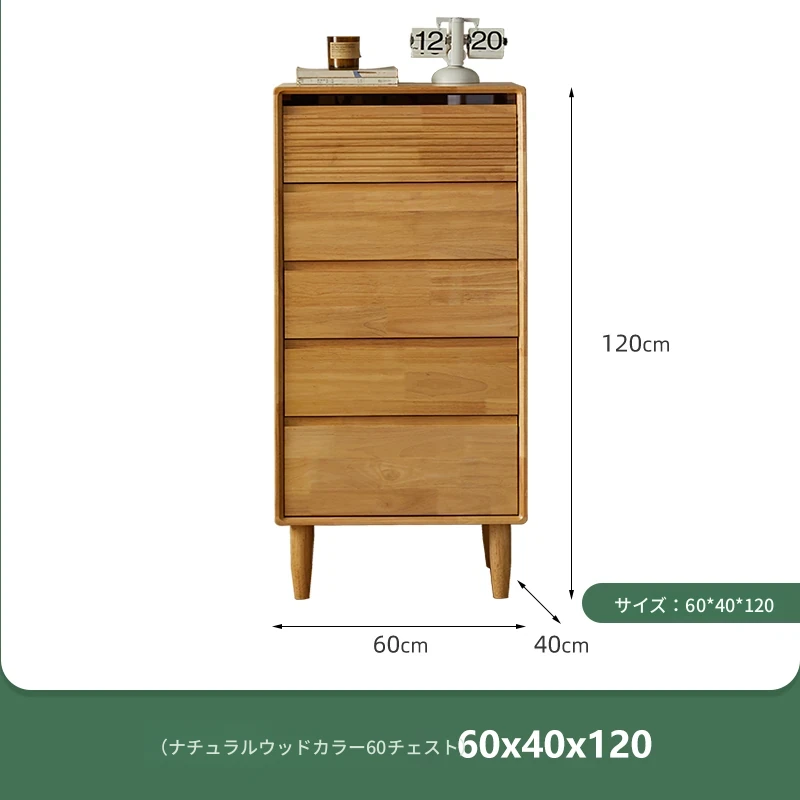 【ナチュラルウッドカラー】無垢材の五段チェスト 60ワイド