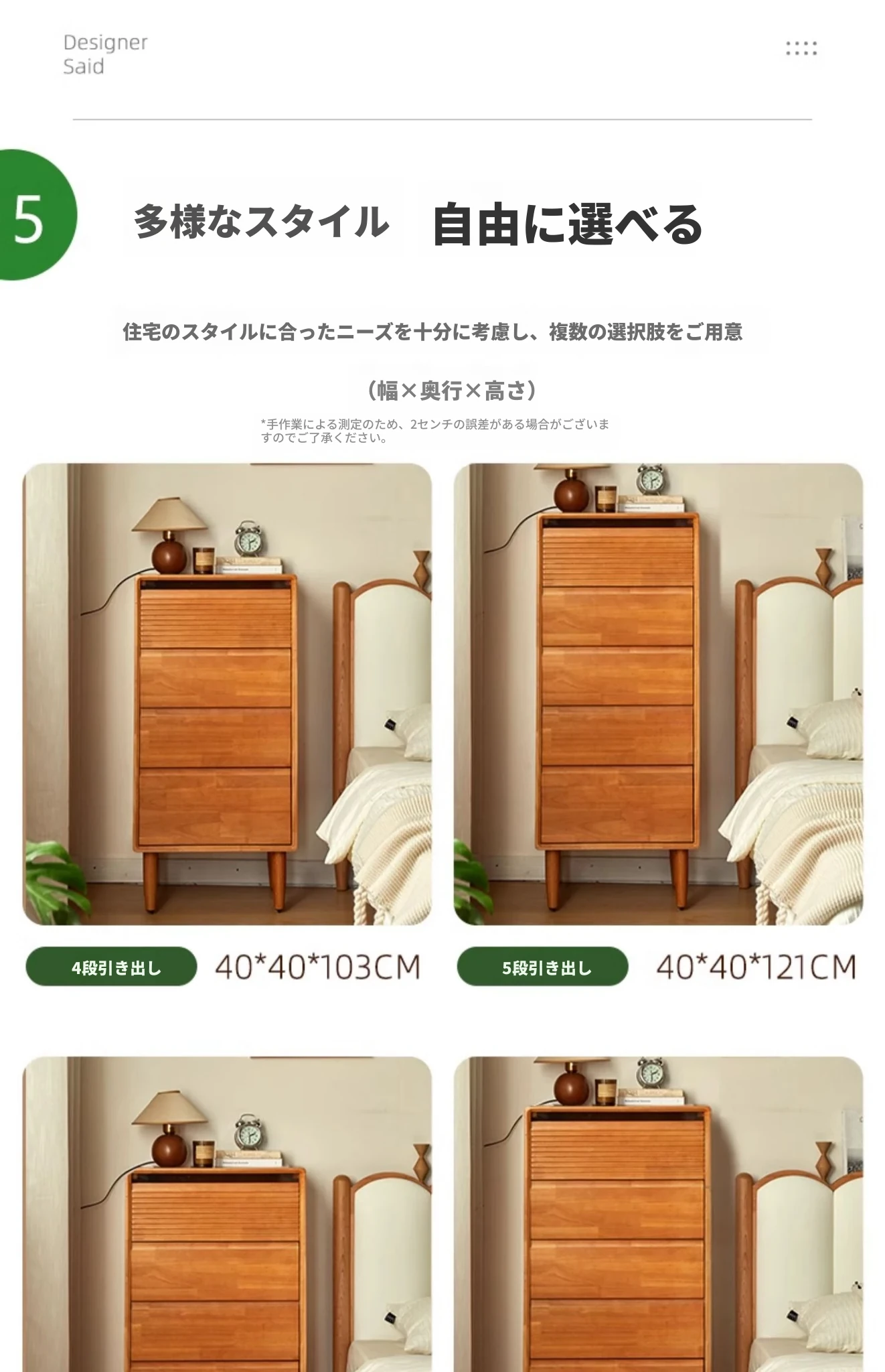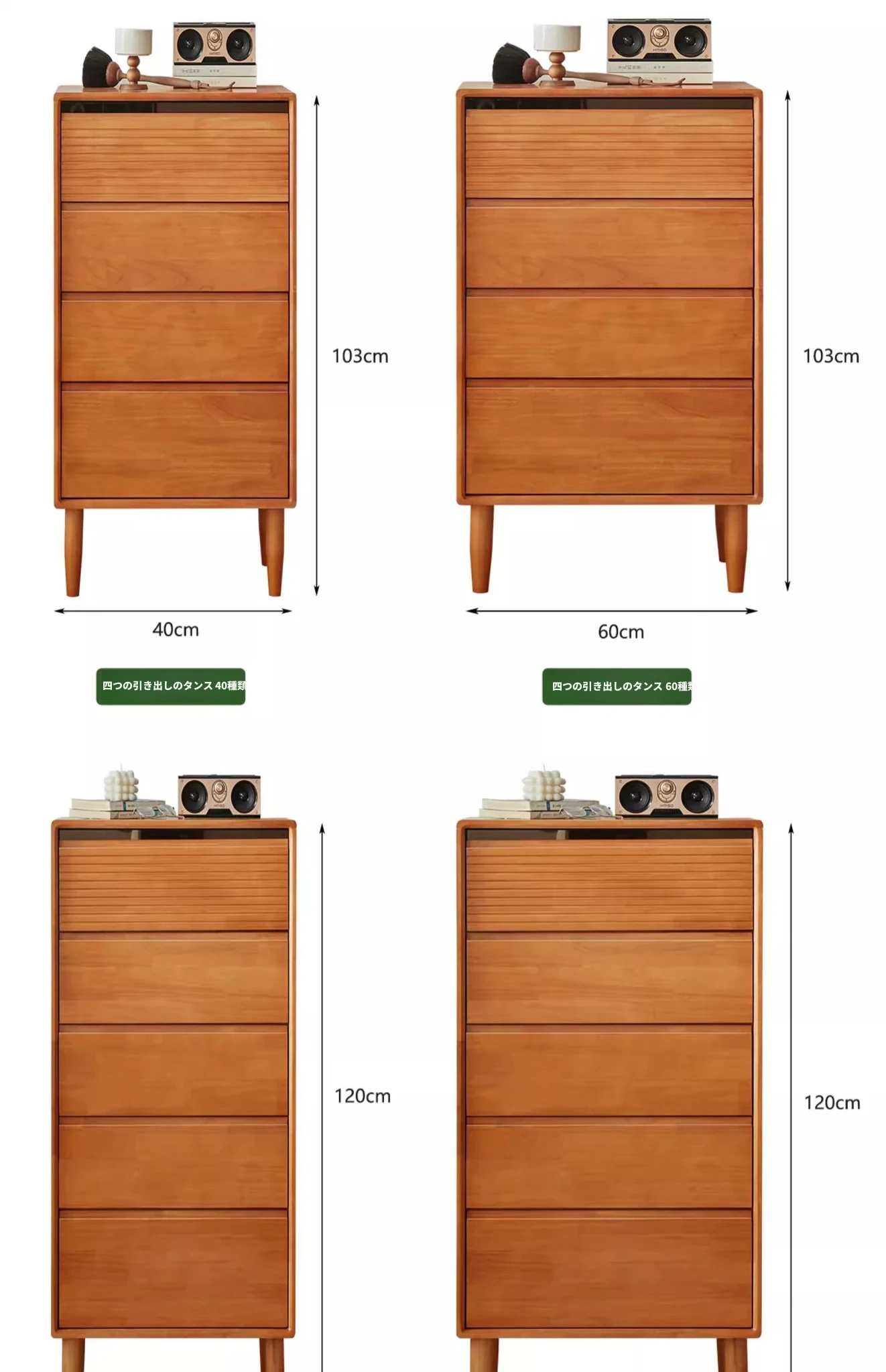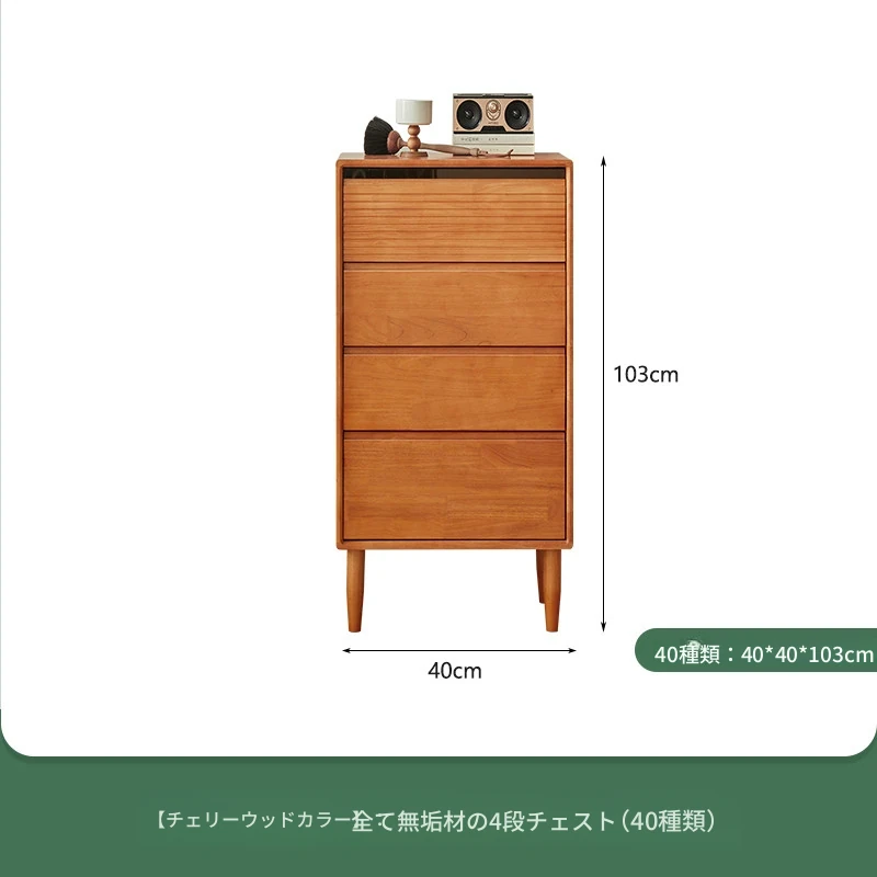 【チェリーウッドカラー】無垢材の四段チェスト 40スリム