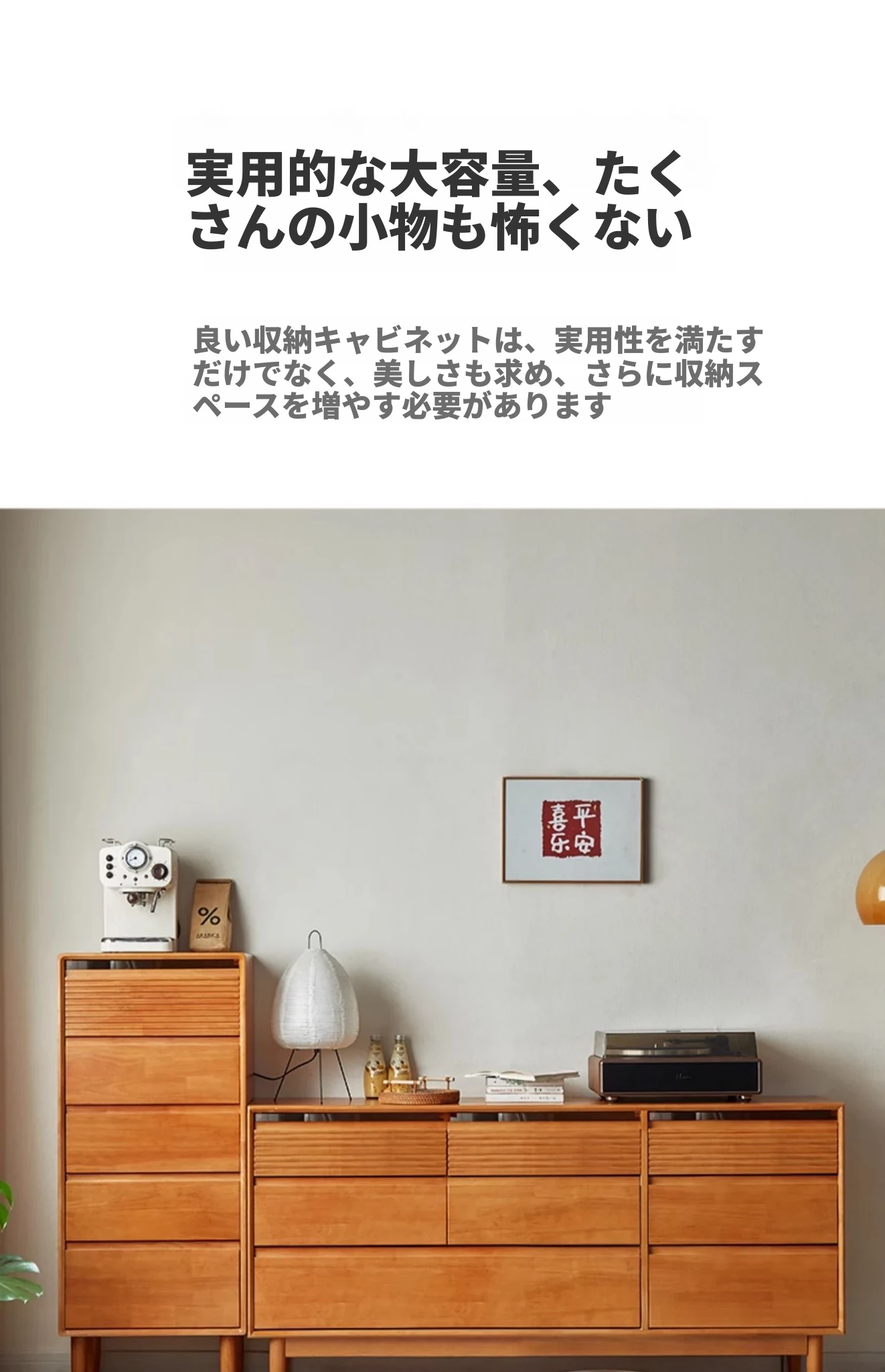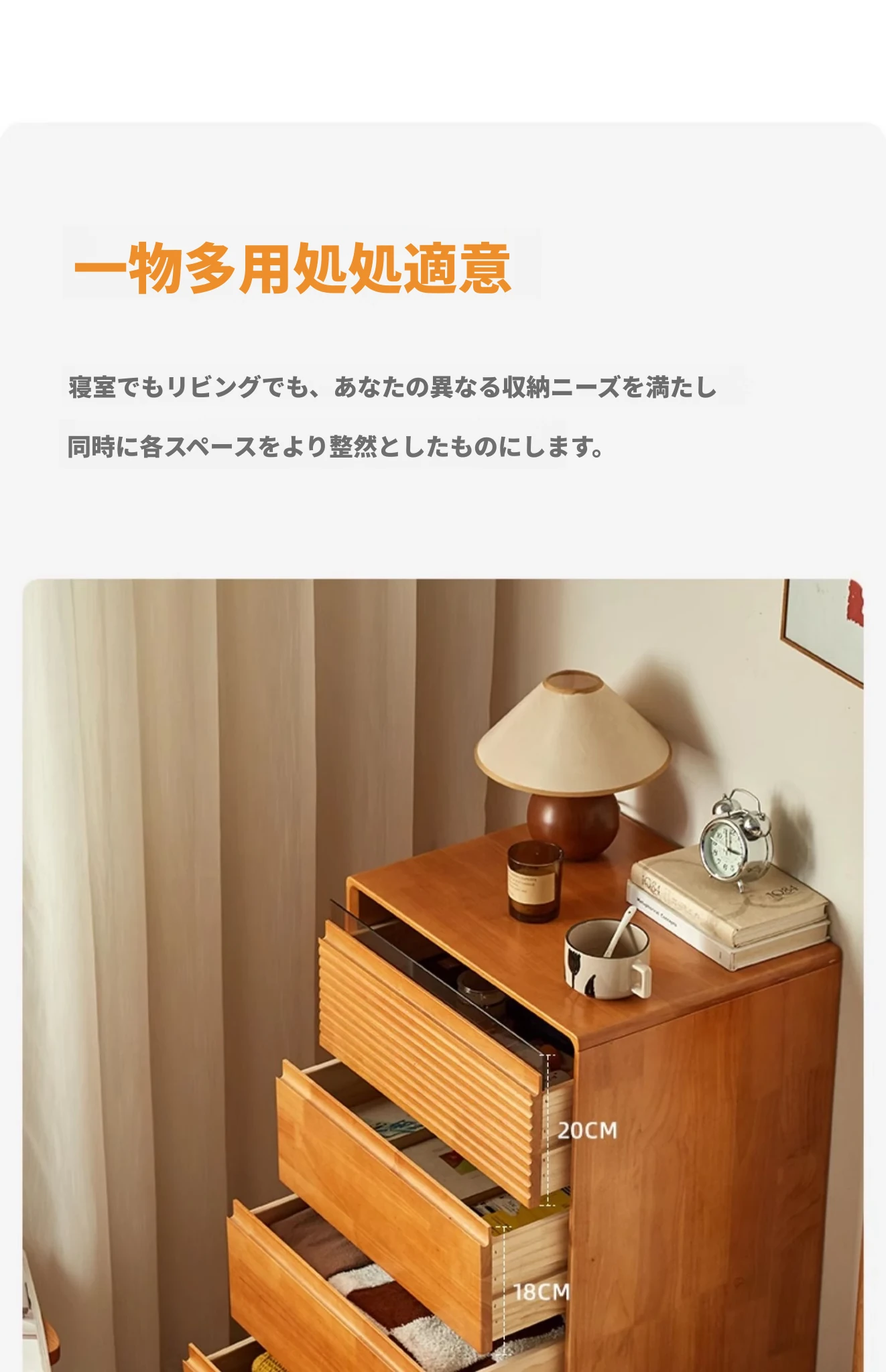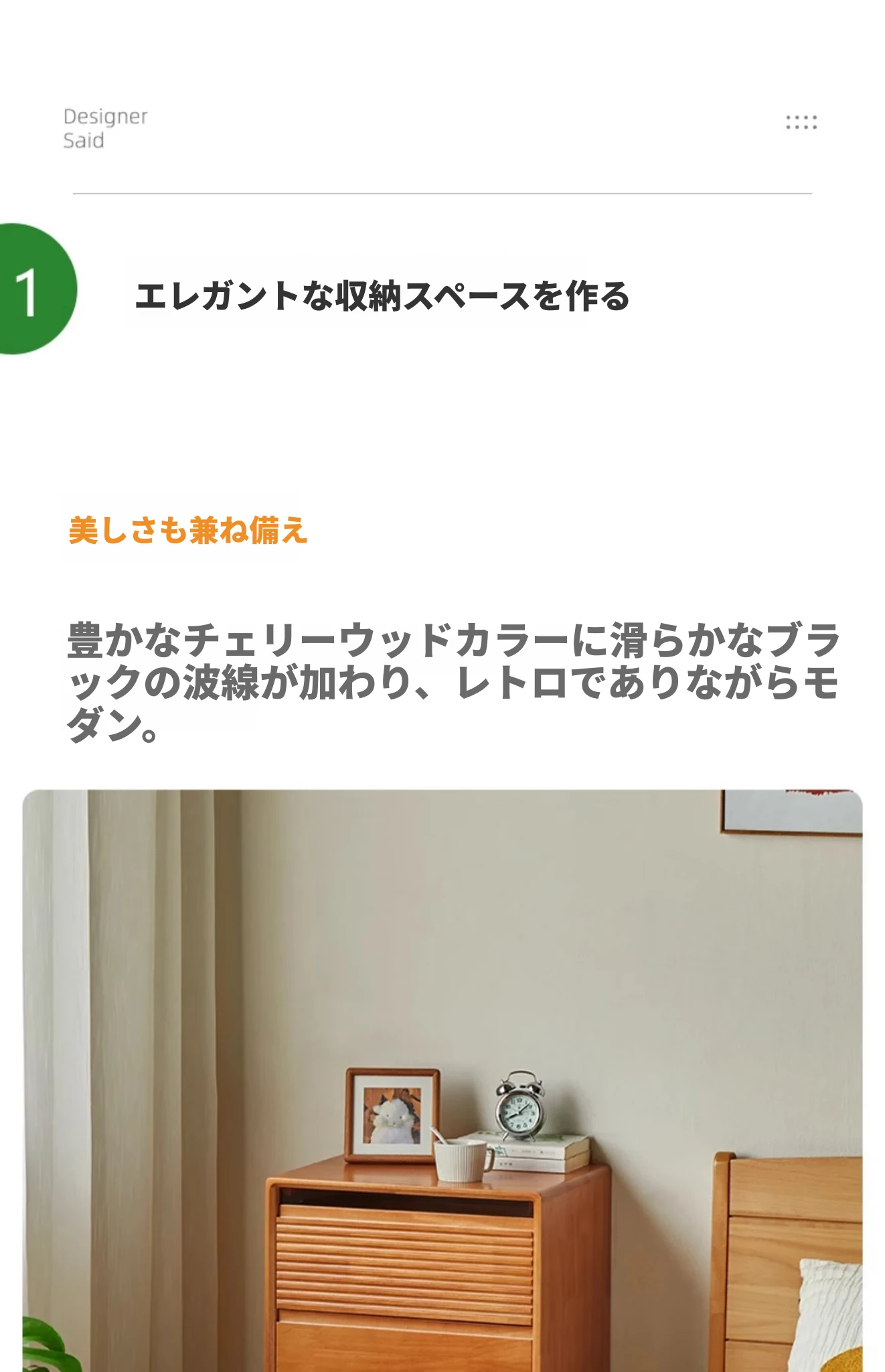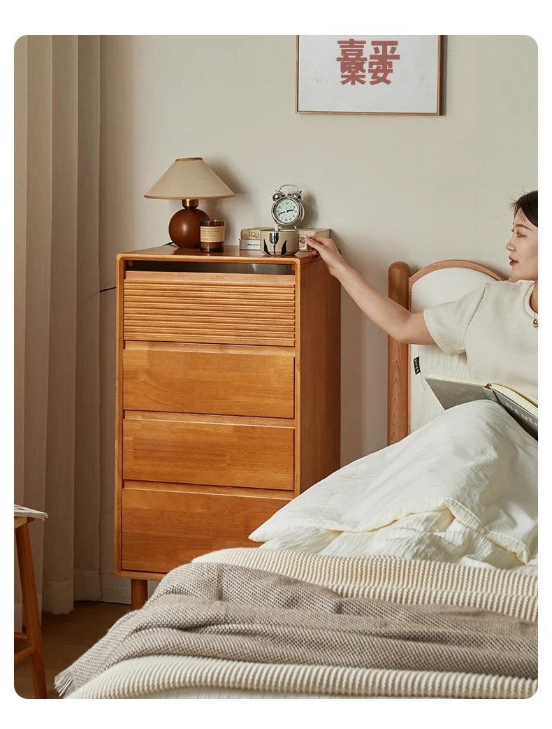 全実木のモダンシンプルな収納キャビネット - ベッドルームに最適なウォールマウント型、チェリーウッドカラーの収納引き出しキャビネットで、スタイリッシュな整理整頓を実現!