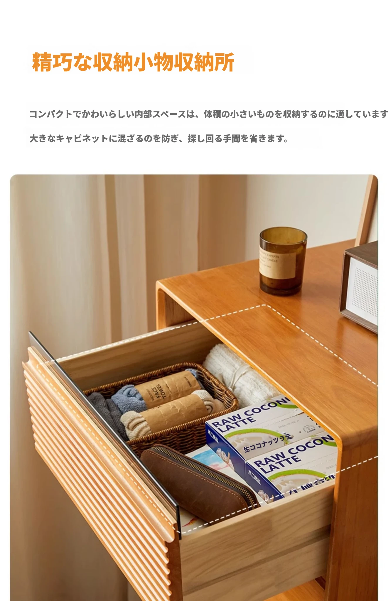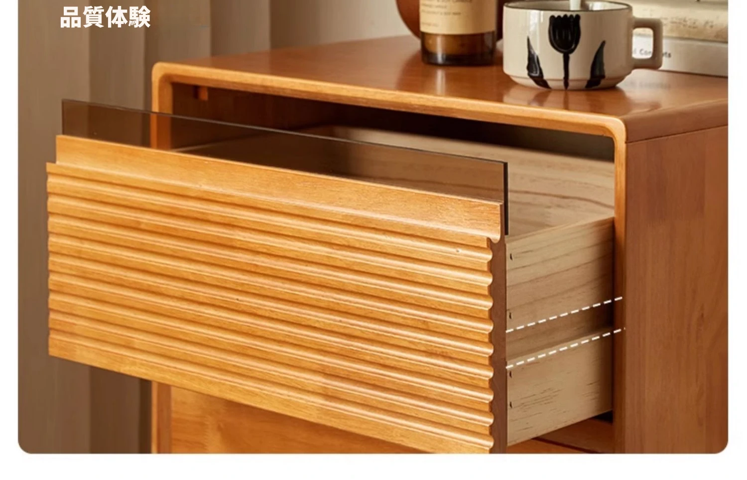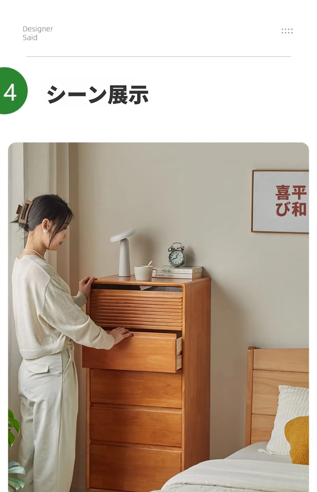 全実木のモダンシンプルな収納キャビネット - ベッドルームに最適なウォールマウント型、チェリーウッドカラーの収納引き出しキャビネットで、スタイリッシュな整理整頓を実現!