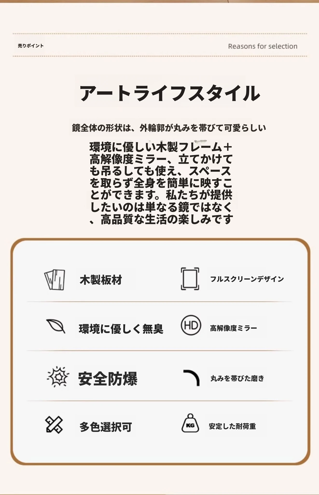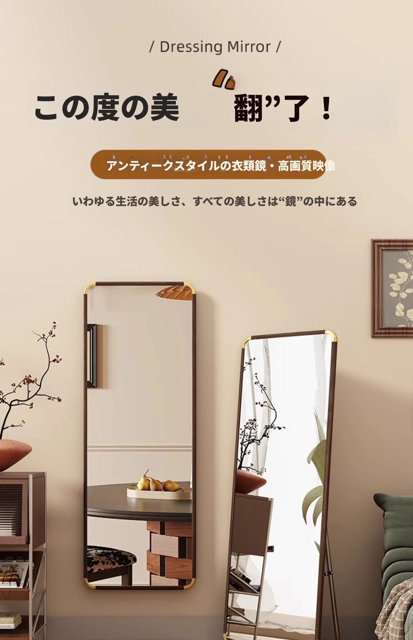 全身鏡 おしゃれな壁掛けタイプ 自宅用 シンプルなデザイン 試着に最適!トレンドの女の子にぴったりな寝室用全身ミラーで、スタイリングを楽しもう!