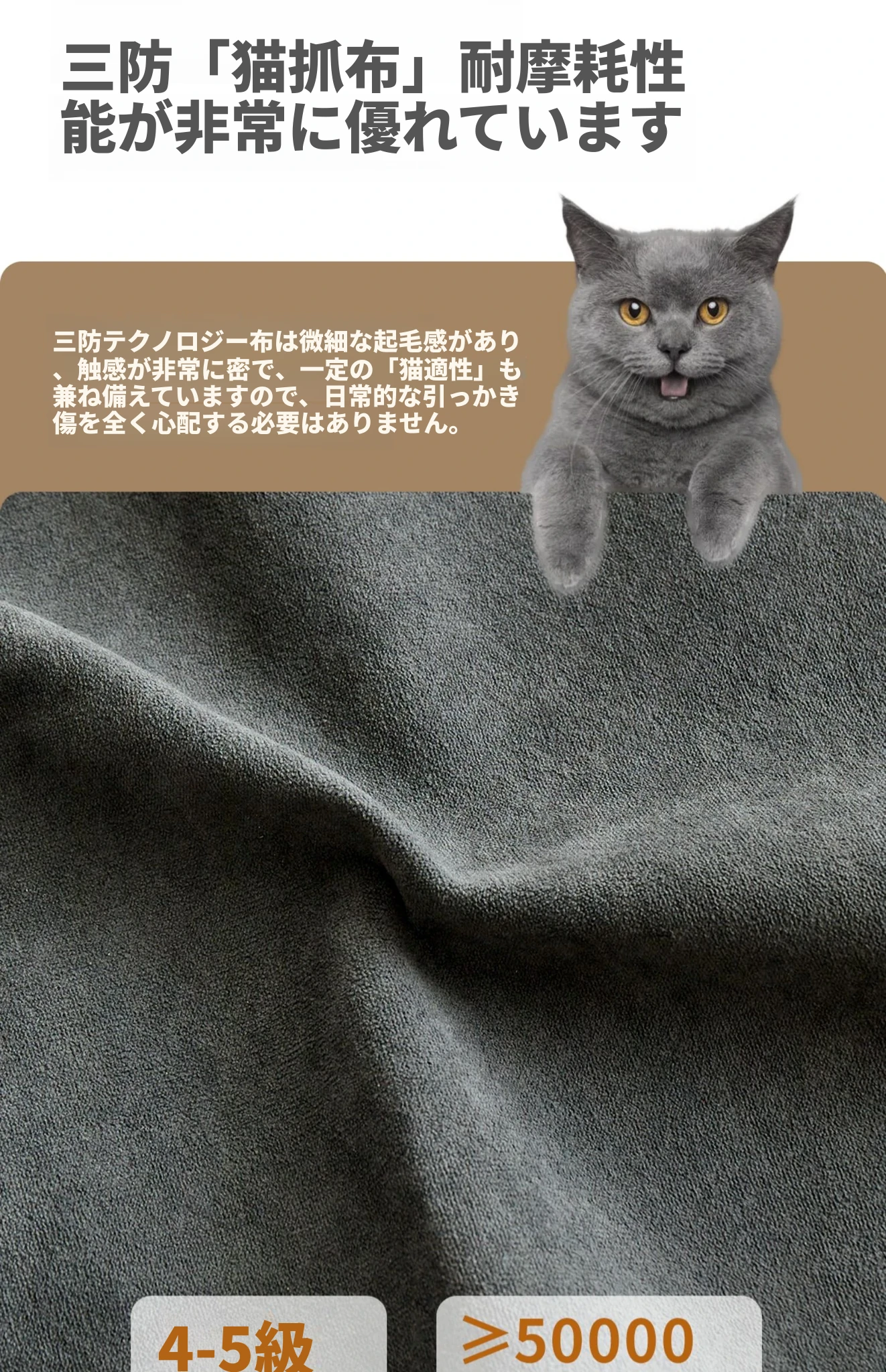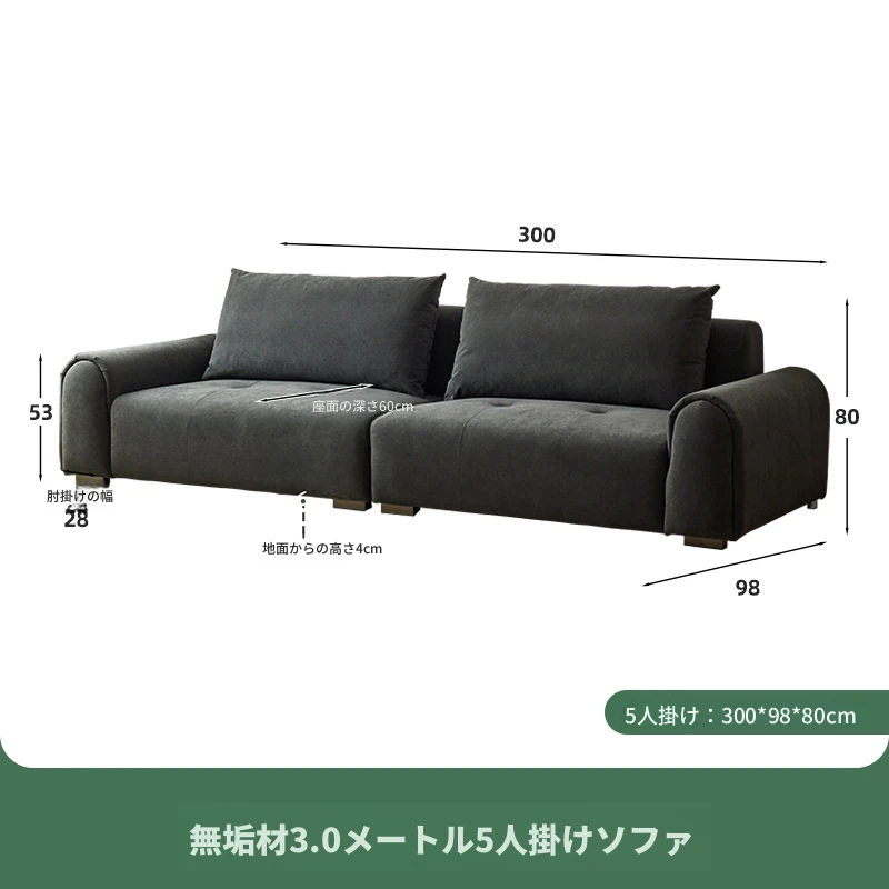 3.0m深空灰ファイブソファ【猫抓布-50mm天然ラテックス+55dバイオレットスポンジ】