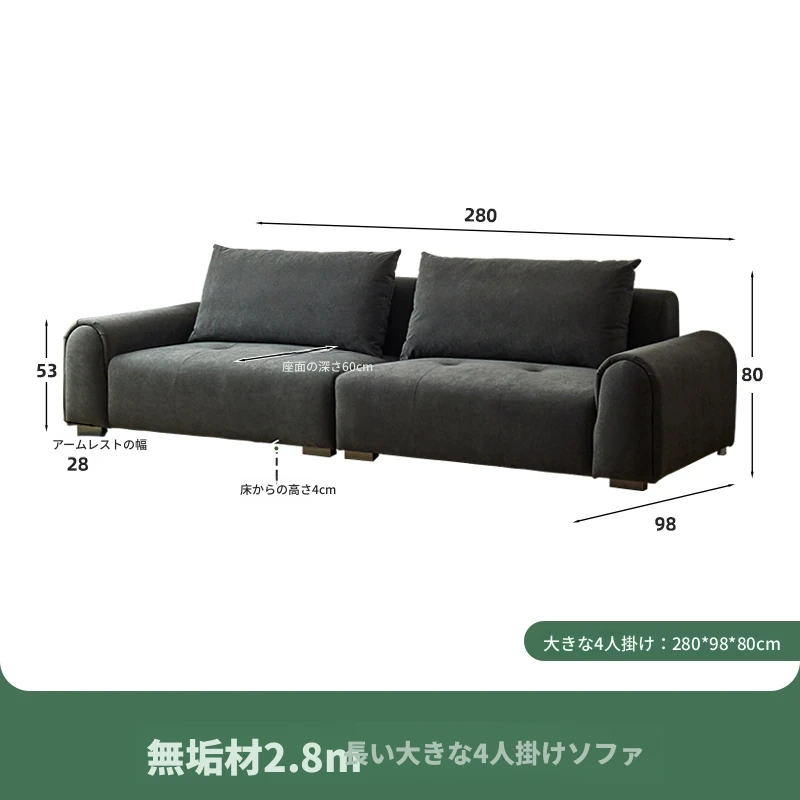 2.8m深空灰ラージフォースソファ【猫抓布-50mm天然ラテックス+55dバイオレットスポンジ】