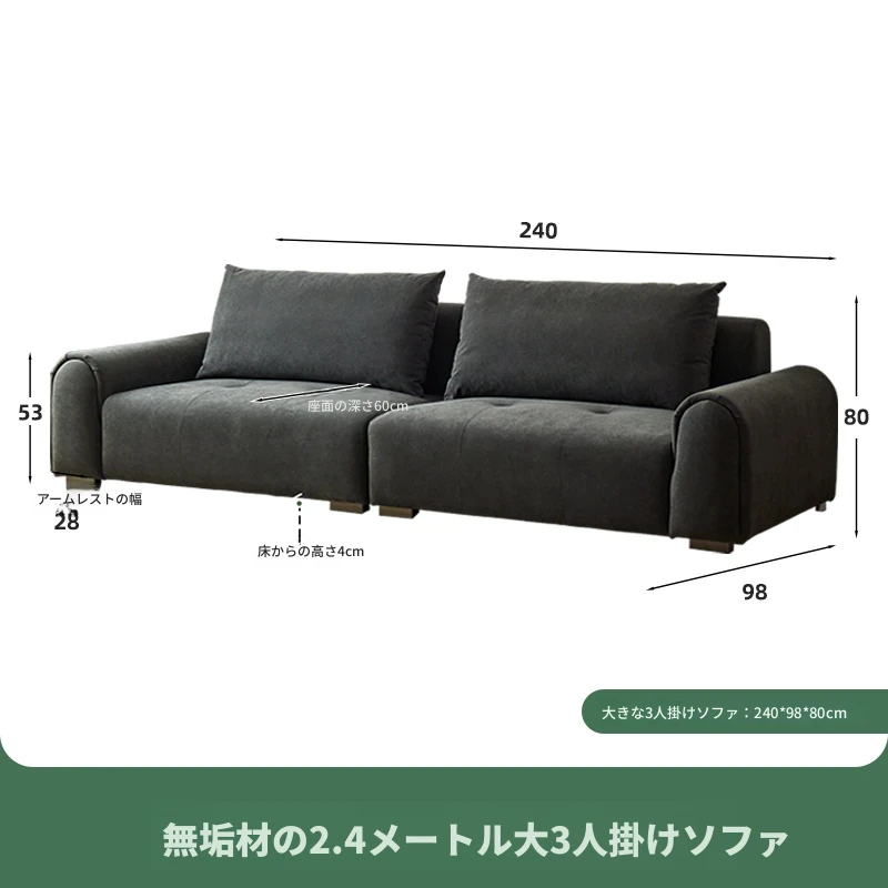 2.4m深空灰ラージスリーピースソファ【猫抓布-50mm天然ラテックス+55dバイオレットスポンジ】