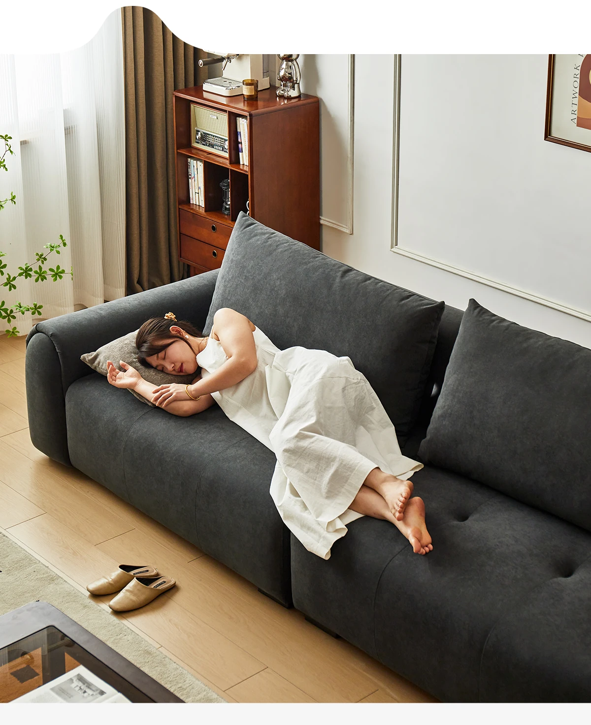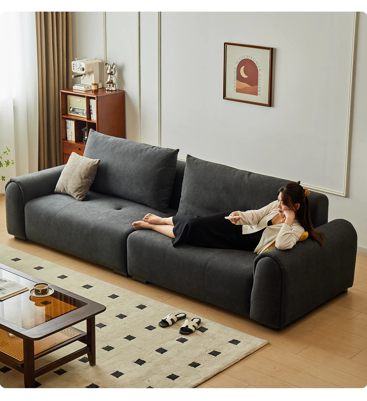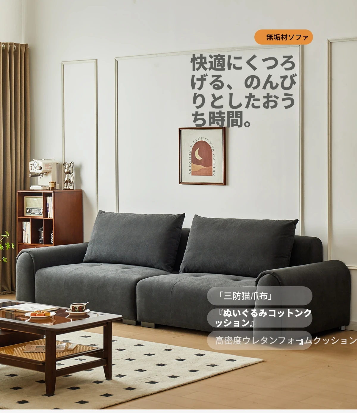 2.2m深空灰スリーピースソファ【猫抓布-50mm天然ラテックス+55dバイオレットスポンジ】