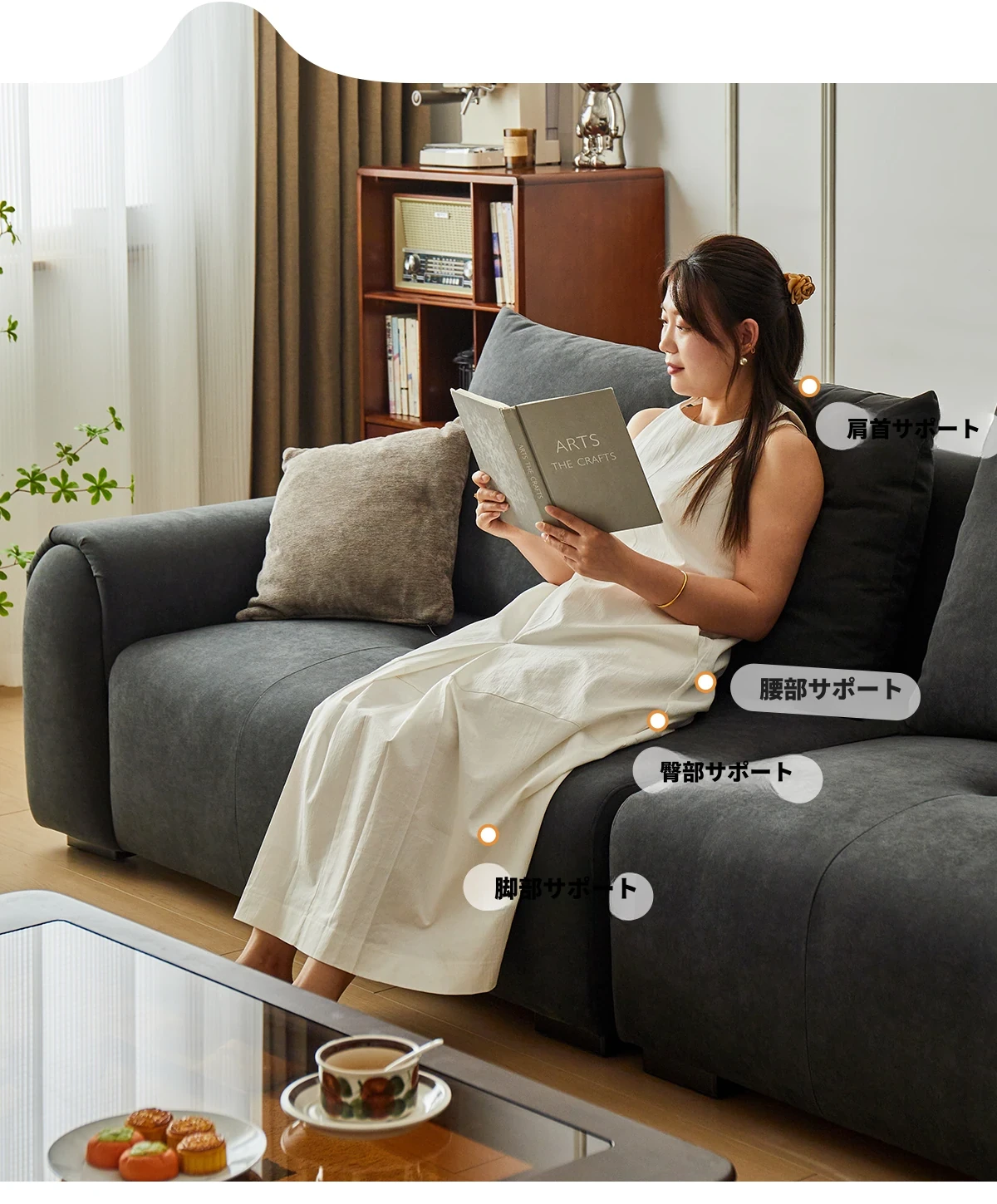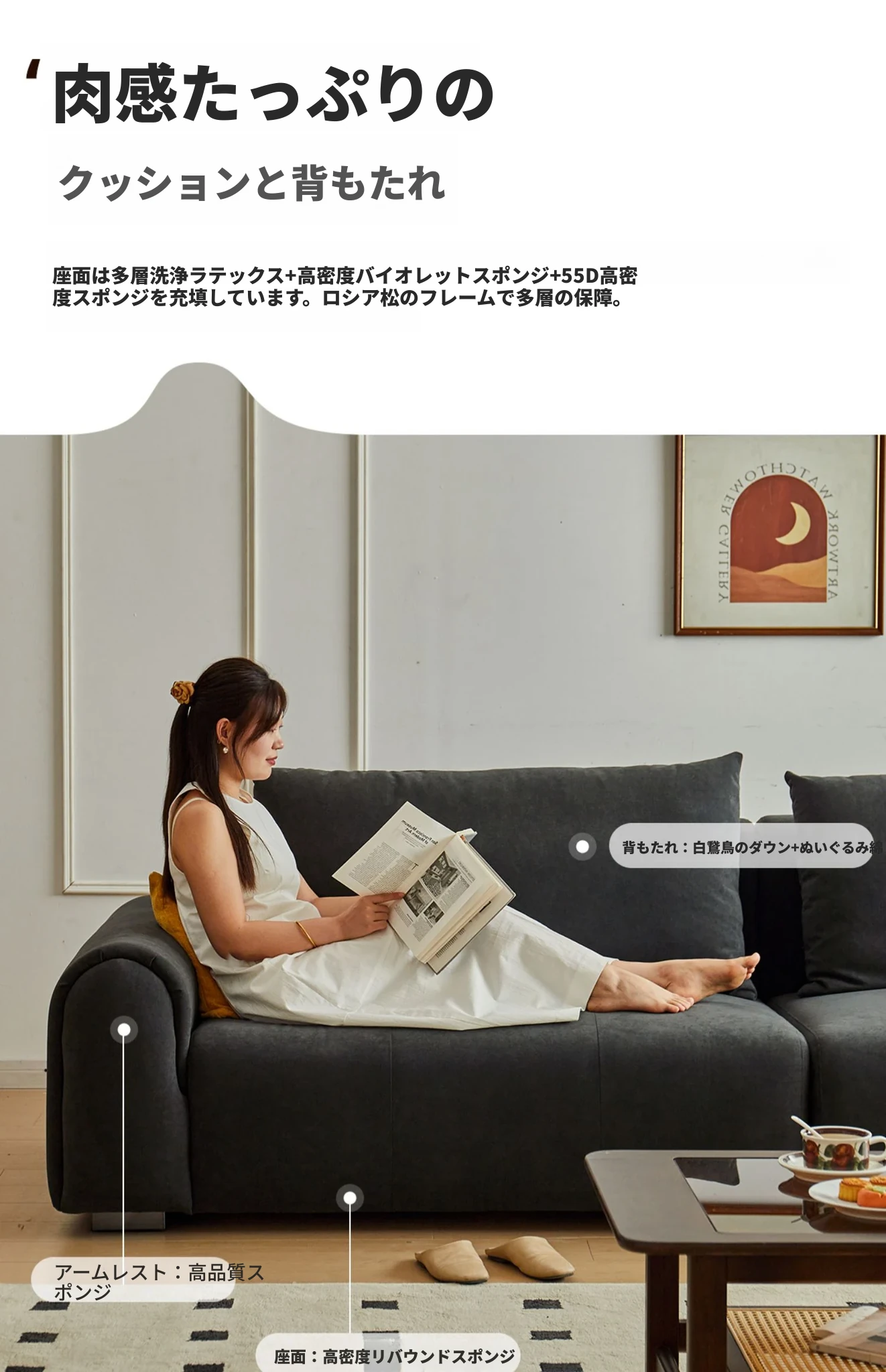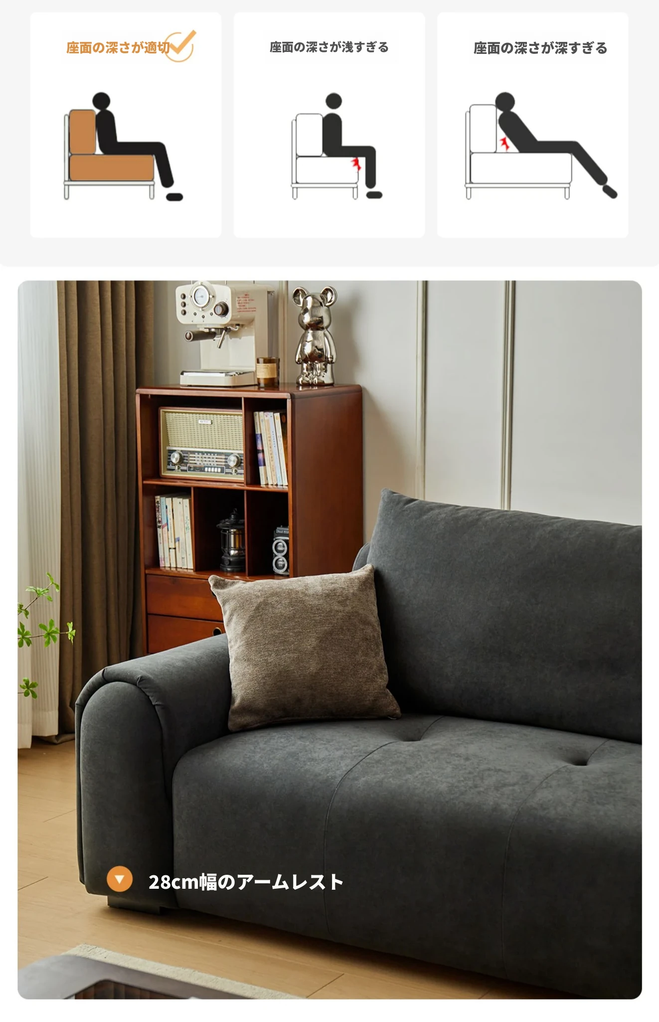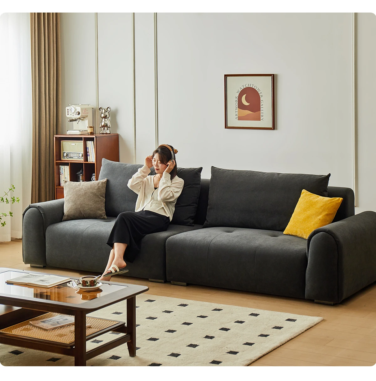 2.2m深空灰スリーピースソファ【猫抓布-50mm天然ラテックス+55dバイオレットスポンジ】