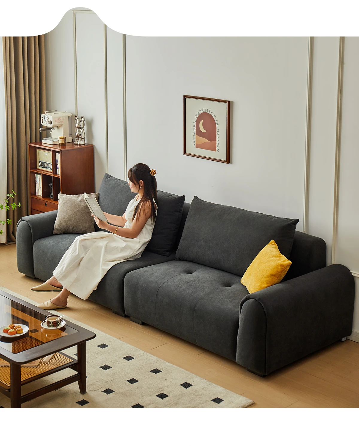 ユニークなデザインの「ユンユン・ジャーメイ」猫爪防止ソファ!おしゃれな小型リビングにぴったりの2024年新作・軽奢華布製3人掛けソファ。快適さとスタイルを兼ね備えた一品で、あなたの空間を特別に演出します!