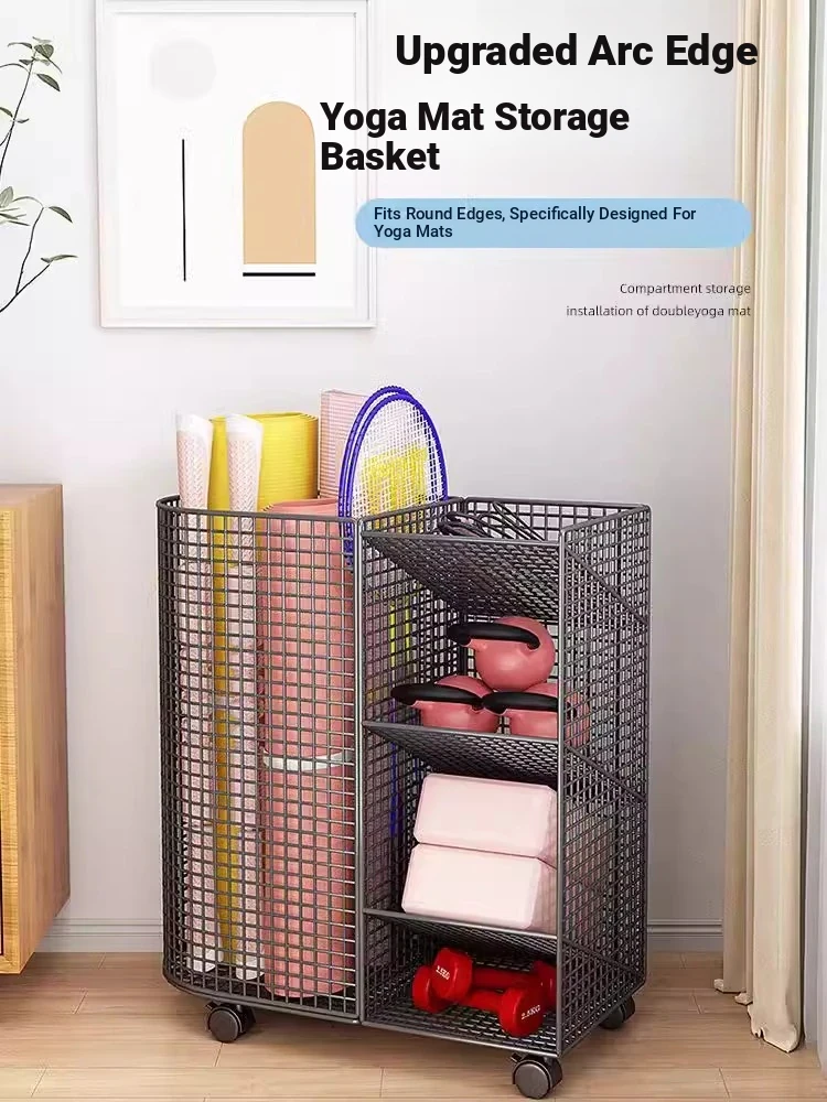 Yoga Mat Storage Basket - Essential Home Organizer for Fitness Gear, Toys, and Basketballs - Versatile Trolley Storage Rack for a Clutter-Free Space!